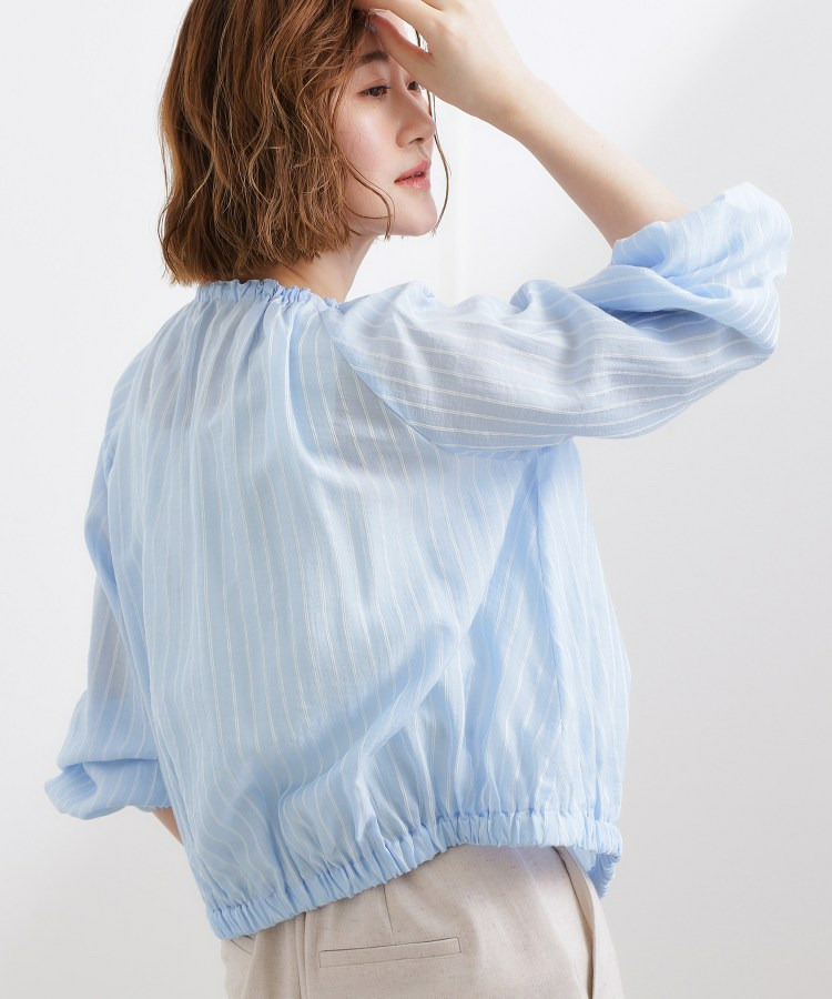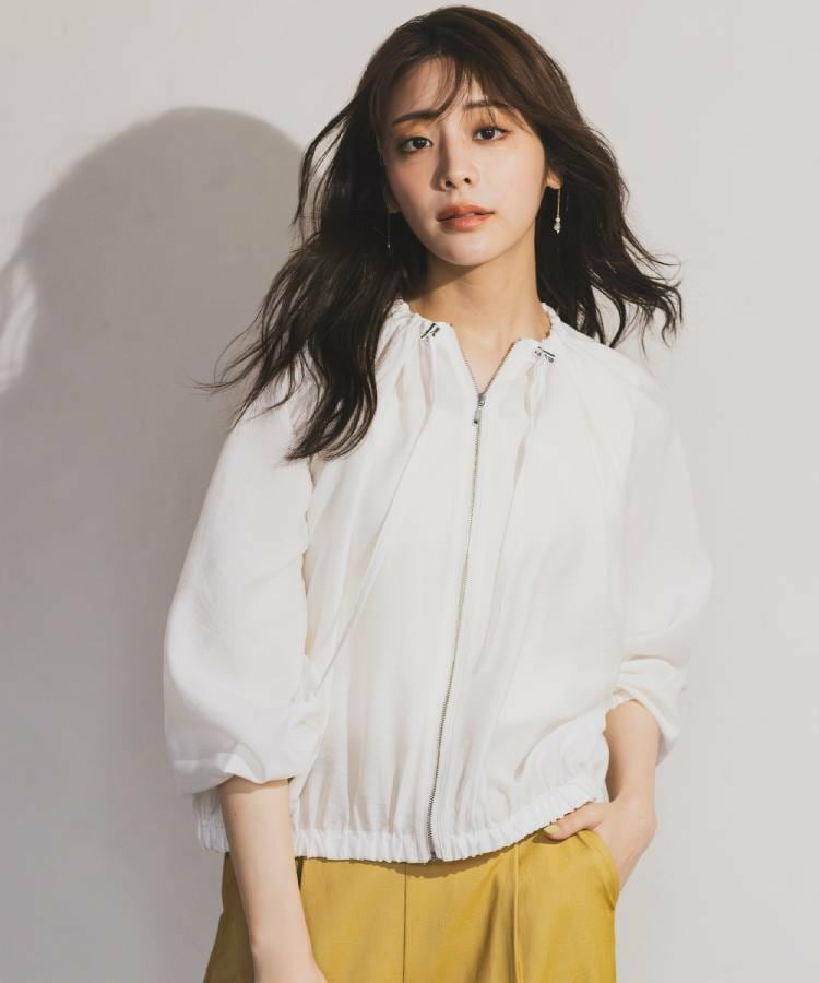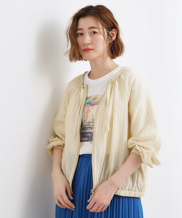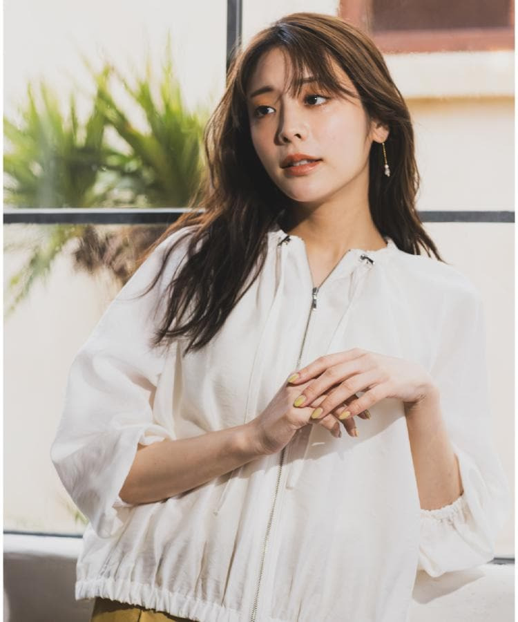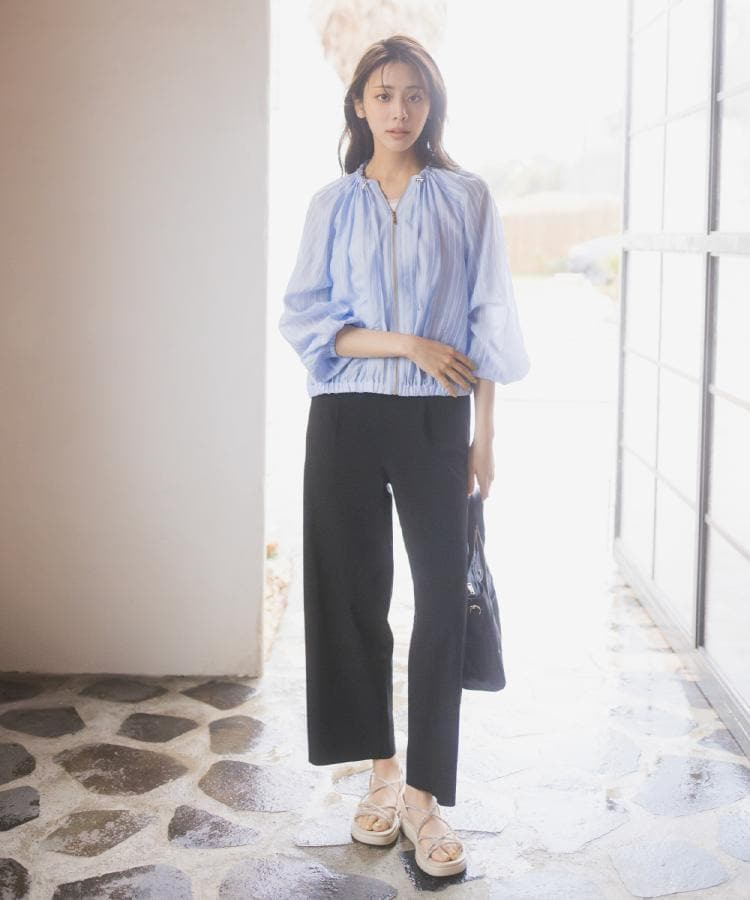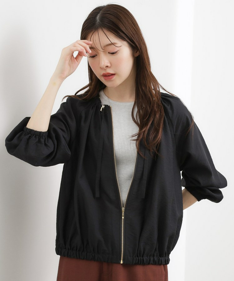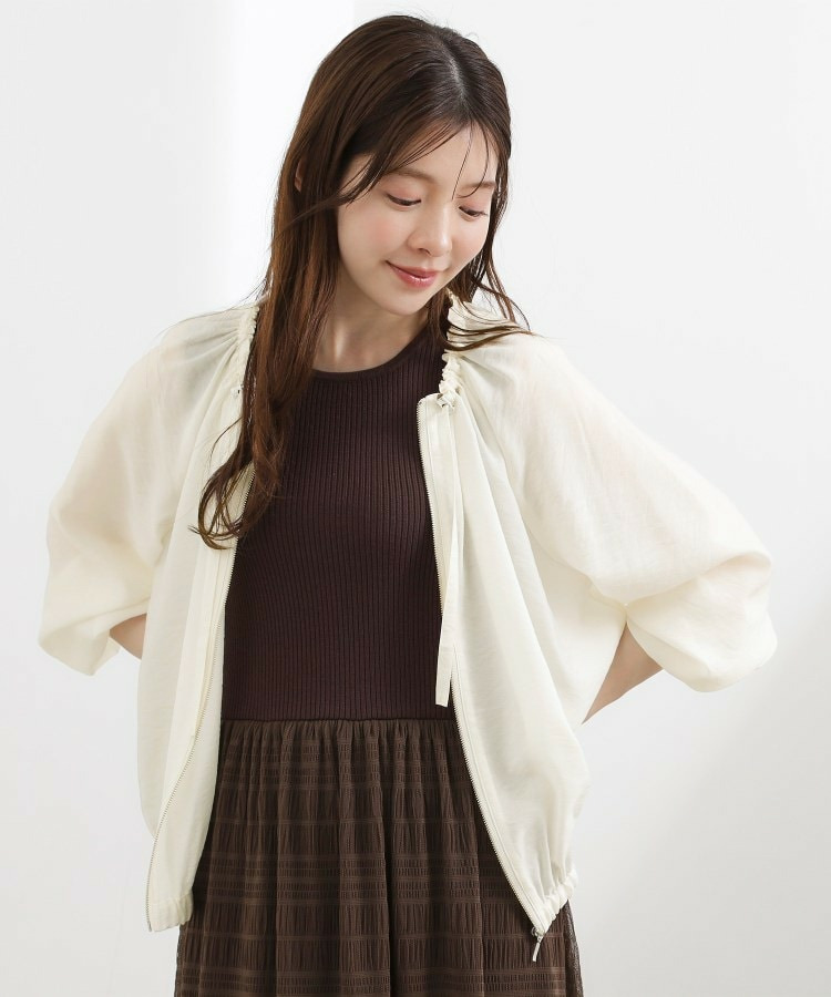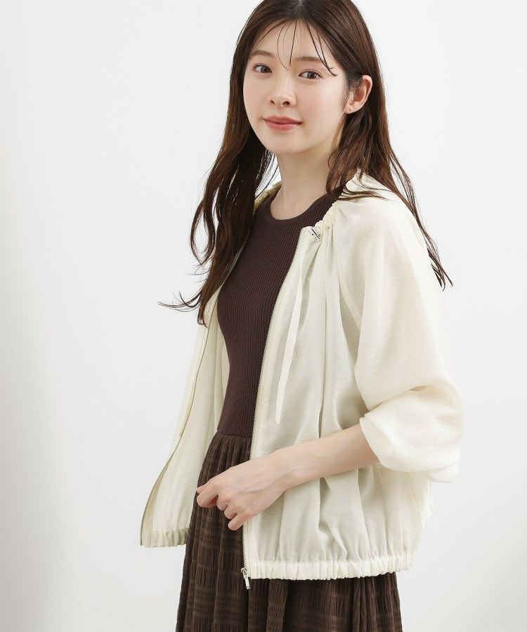 ネックにドローストリングギャザーを施したシアーブルゾンです。