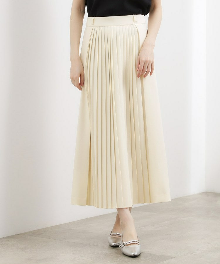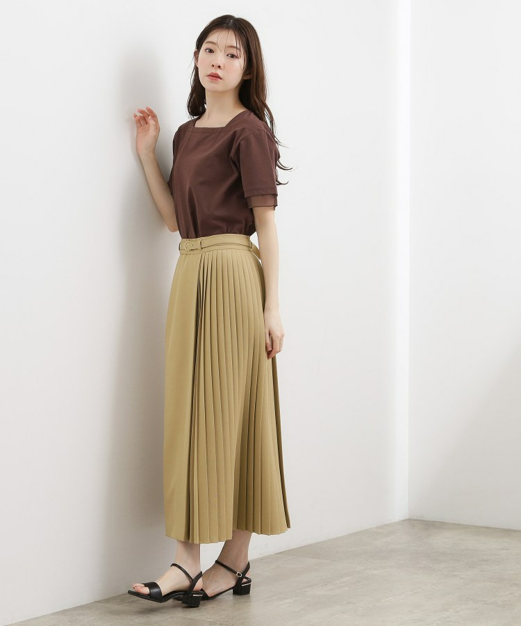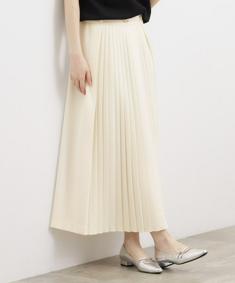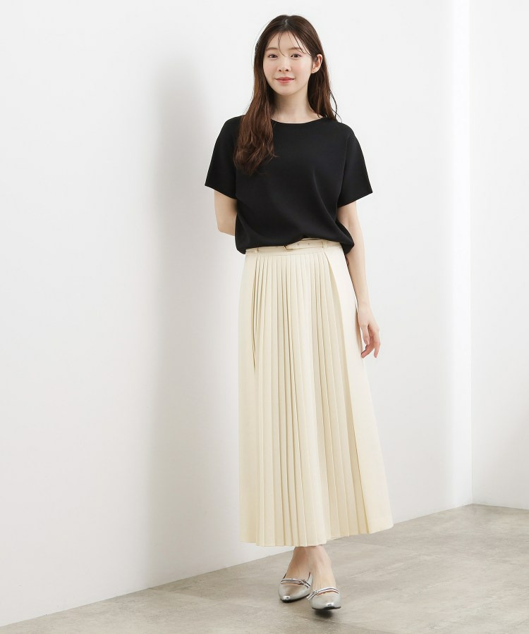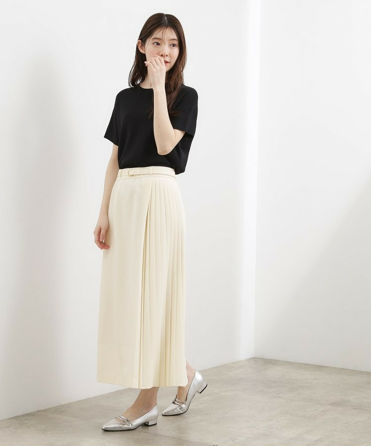 着用の向きを変えることでプリーツの見え方をアレンジでき、スタイリングに合わせて異なる表情を楽しめます。