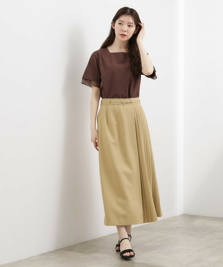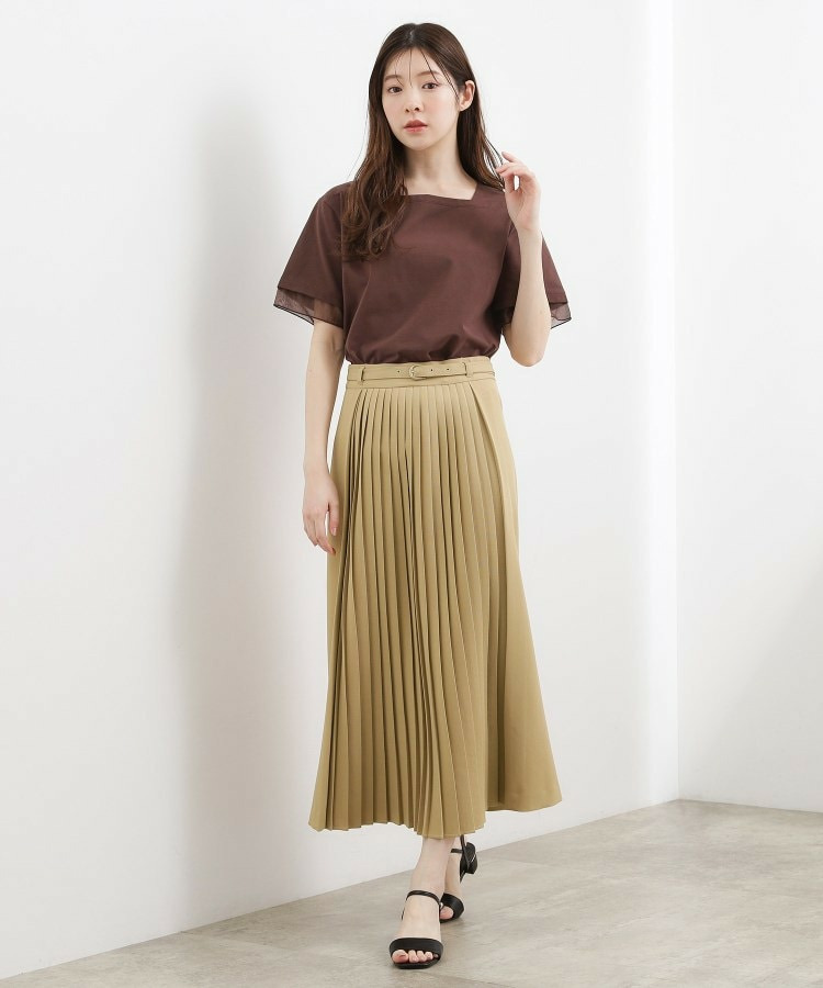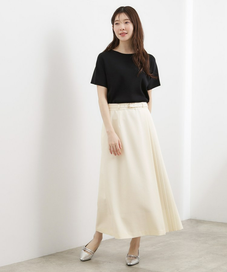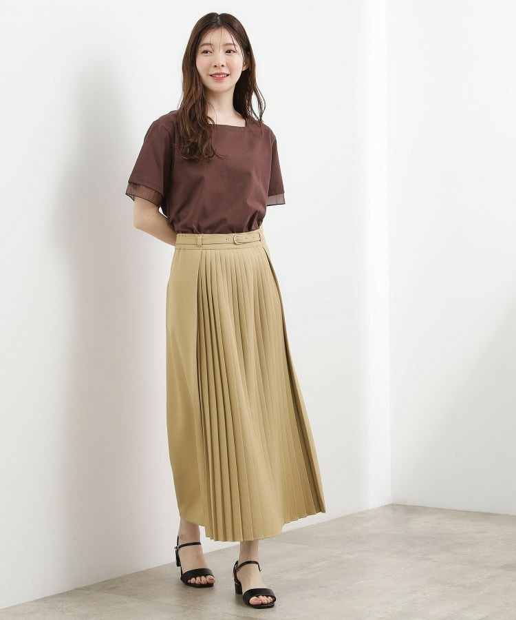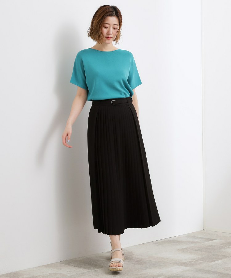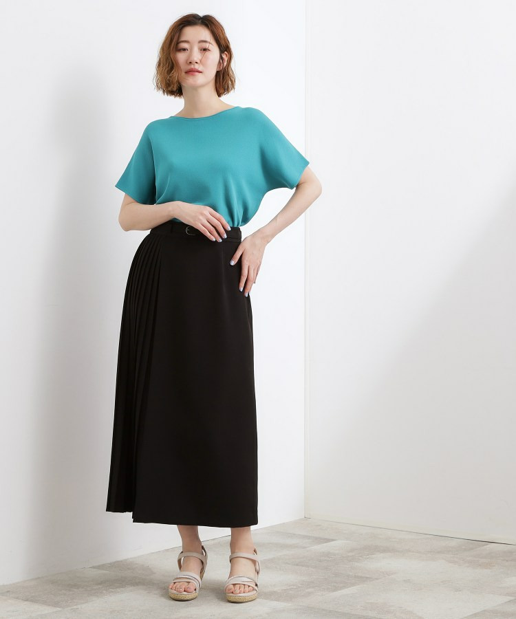 着用の向きを変えることでプリーツの見え方をアレンジでき、スタイリングに合わせて異なる表情を楽しめます。
