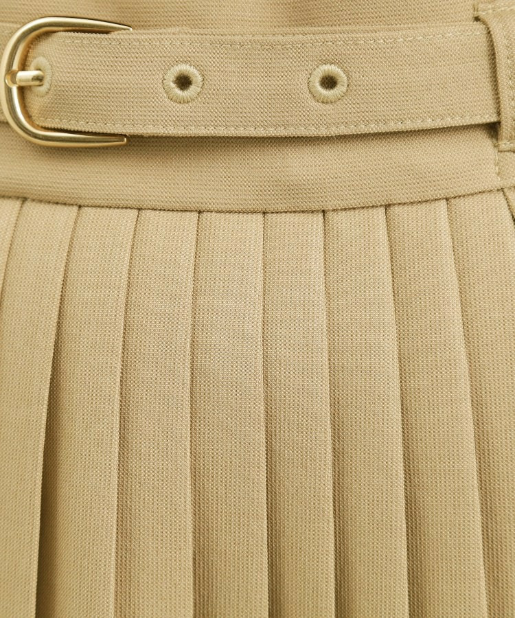 共生地のクラシカルなメタル調バックル付きベルトが、ウエスト周りのアクセントになります。