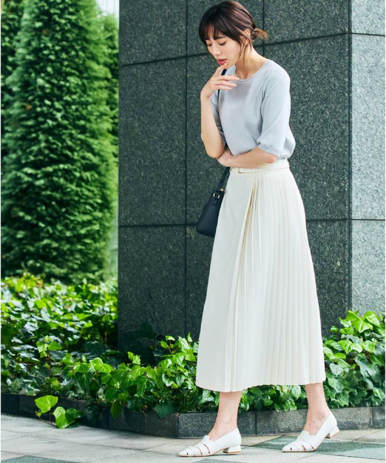 足元はパンプスできれいめに、フラットシューズやサンダルで軽やかに仕上げるのも◎。