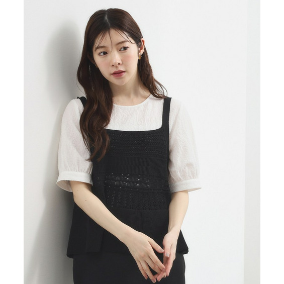 透かし編み切替ニットビスチェ×ブラウスセット