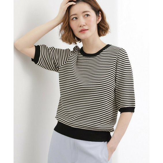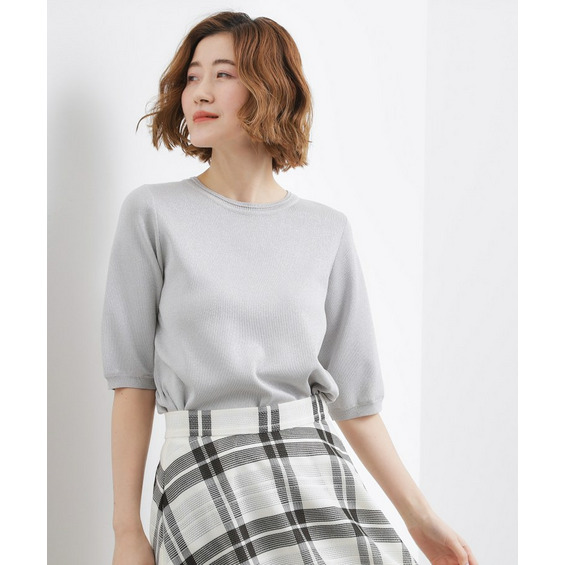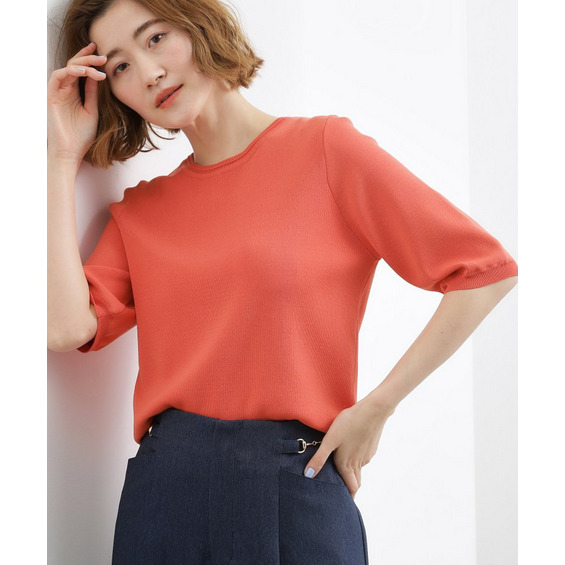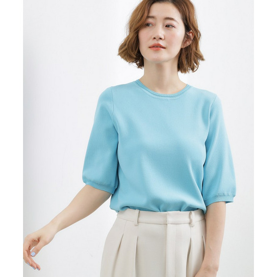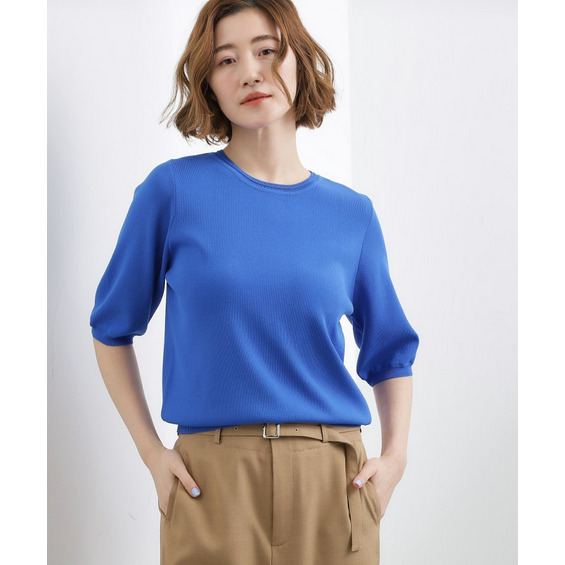 【シリーズ累計34万枚】やわらかドライタッチ 五分袖クルーネックニット