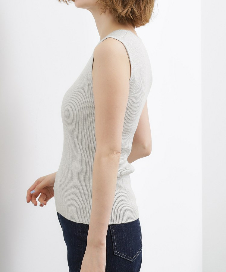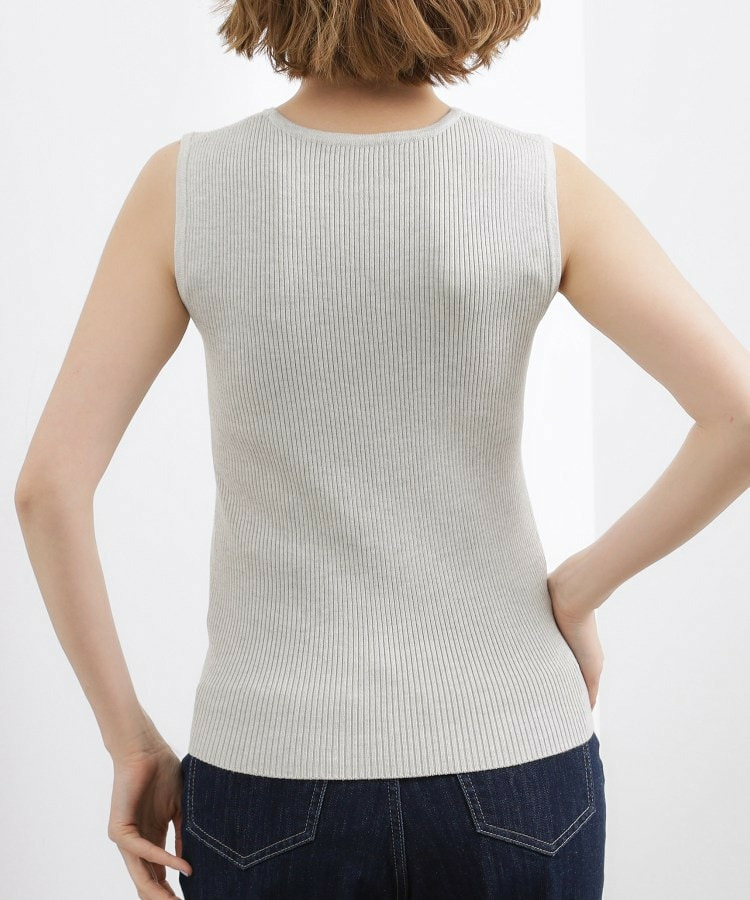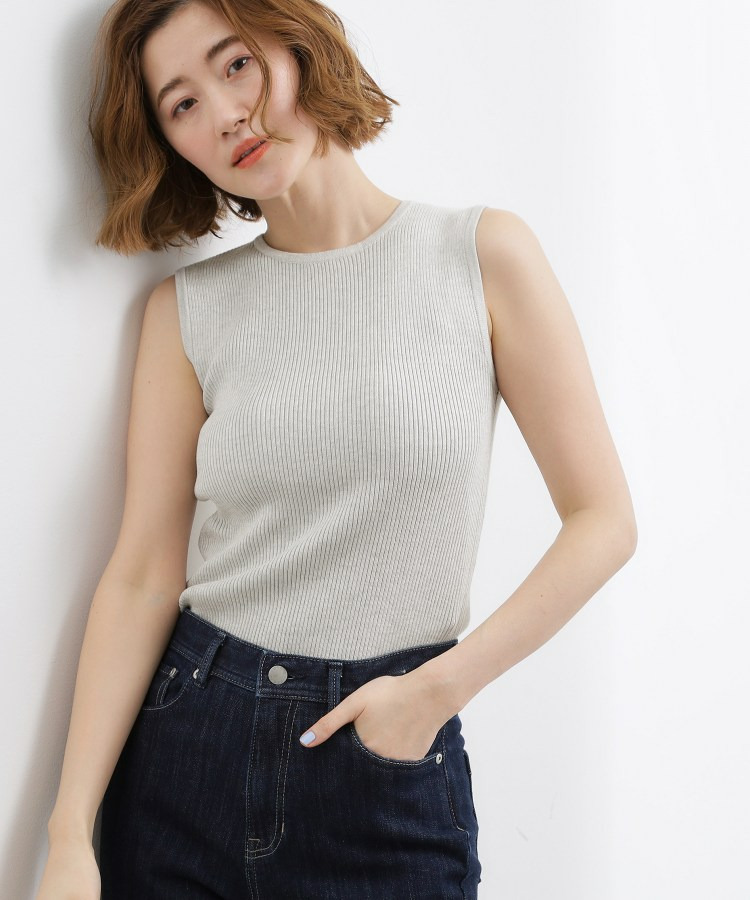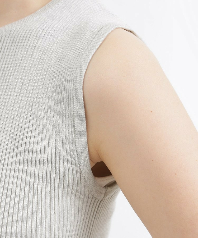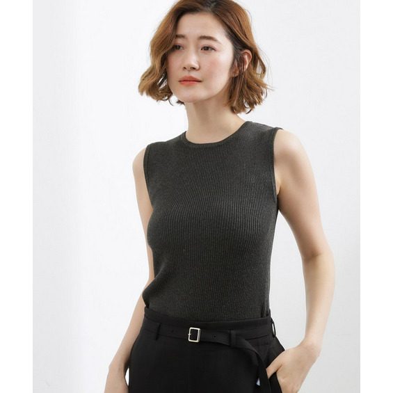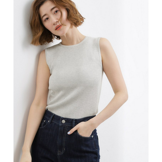 ラメが程よく施されたリブ編みのニットタンクトップ。
