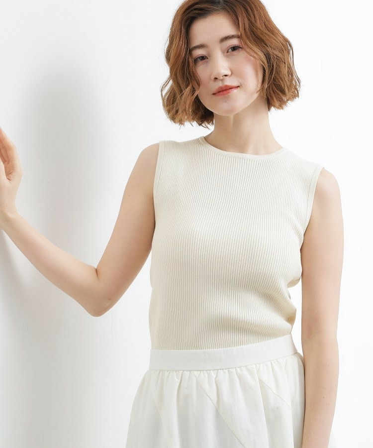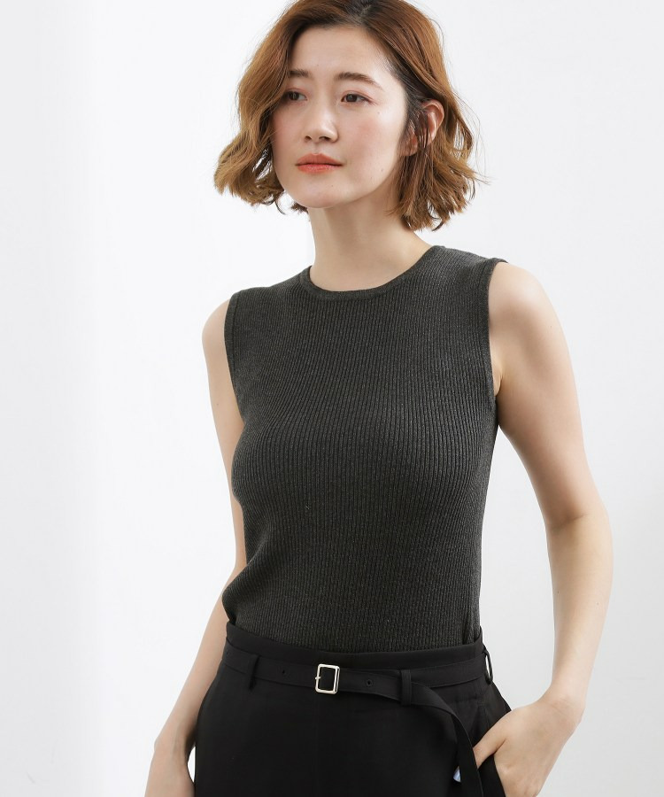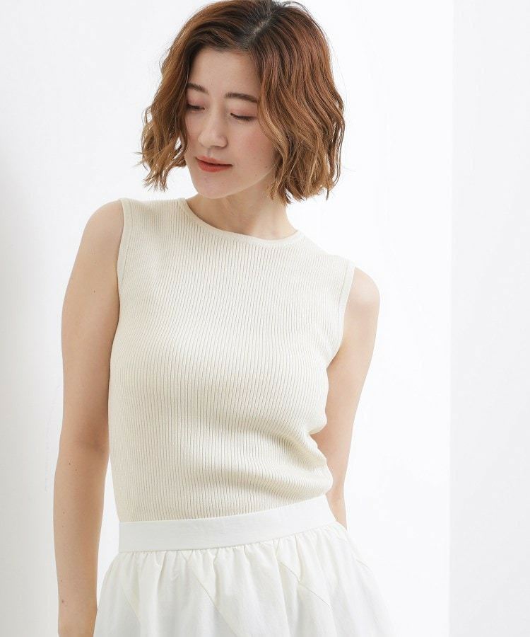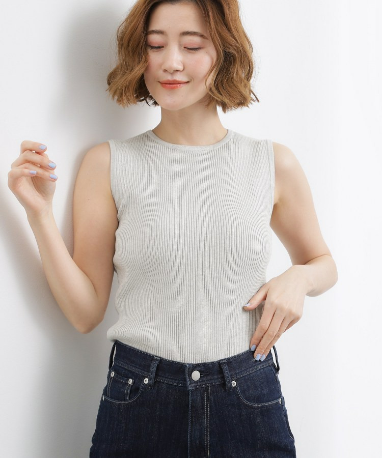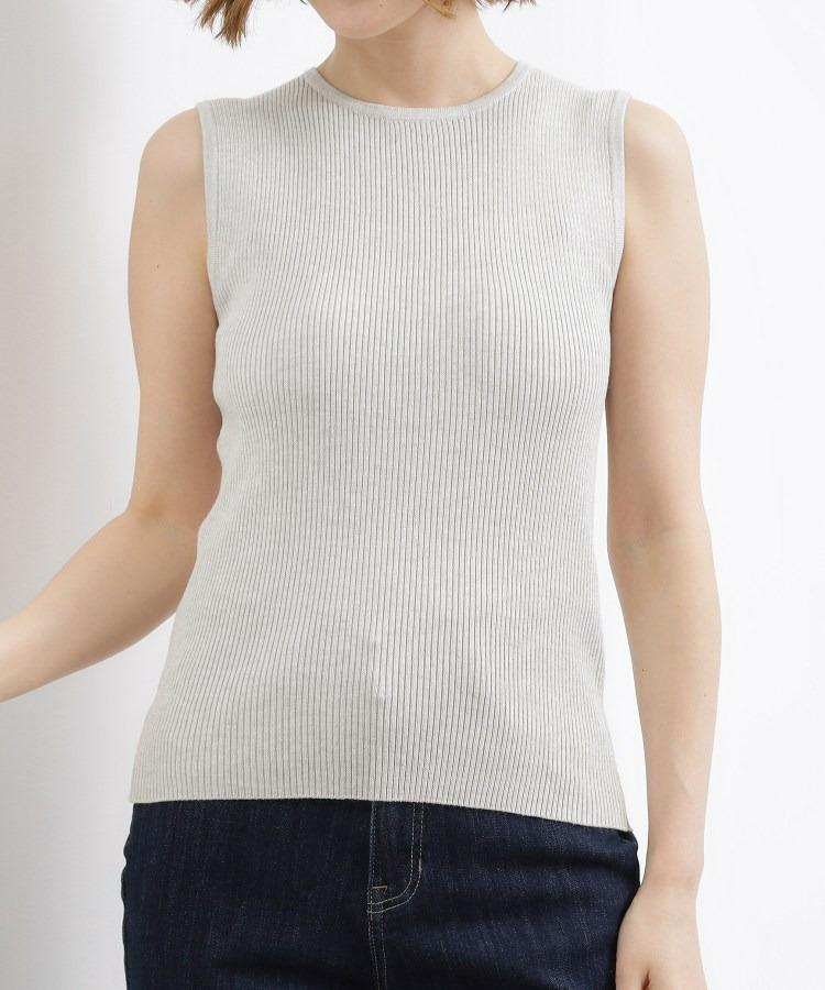 ラメが程よく施されたリブ編みのニットタンクトップ。