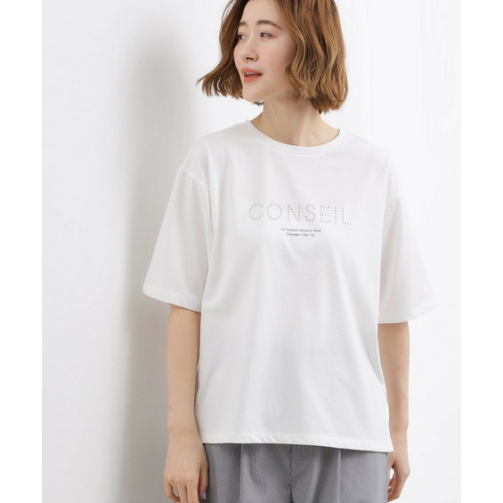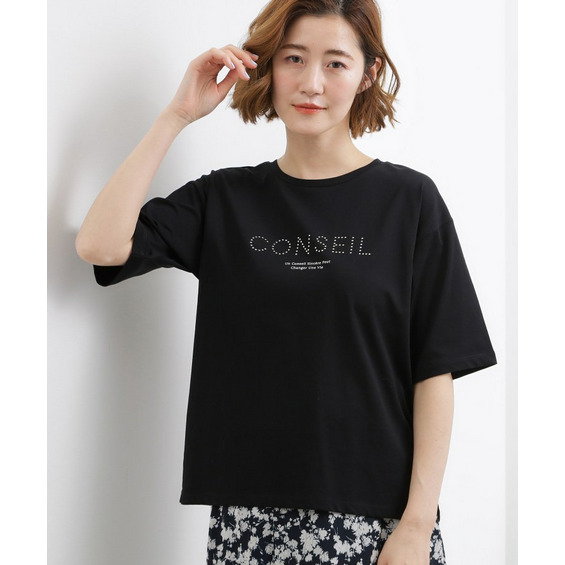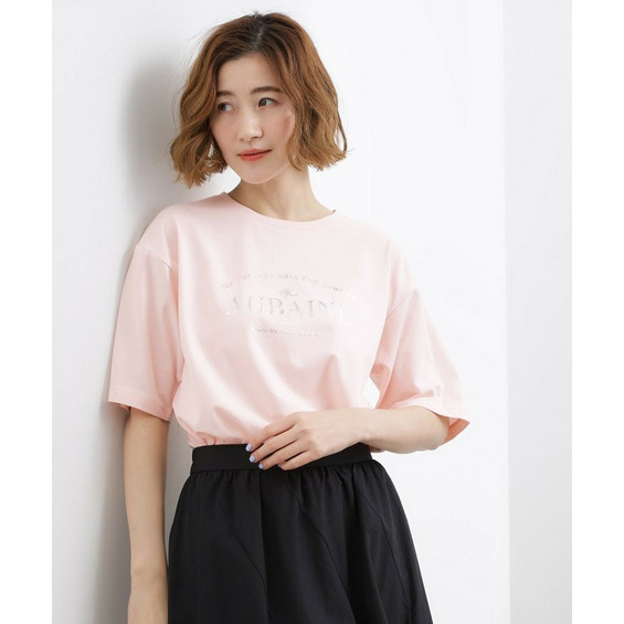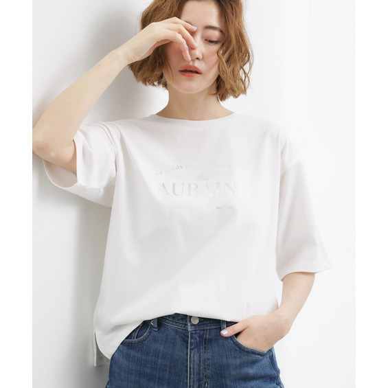 ドロップショルダーで二の腕をカバーしつつ、ほどよくゆったりとした5分袖ロゴTシャツ。