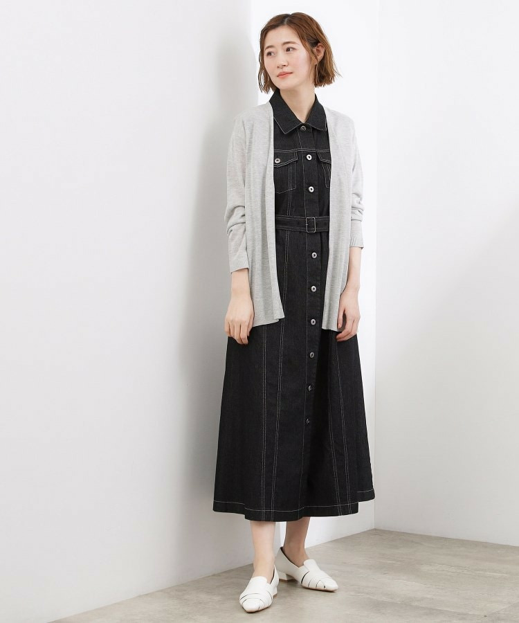 天竺編みで仕立てたシンプルなデザインのロング丈カーディガン。