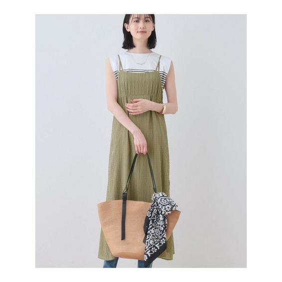 【洗える/凹凸素材】シャーリング調素材キャミワンピース