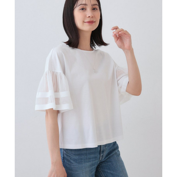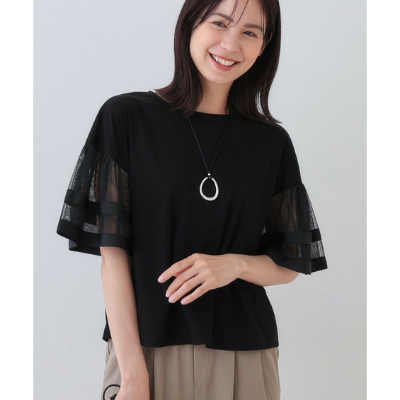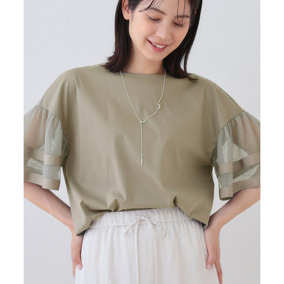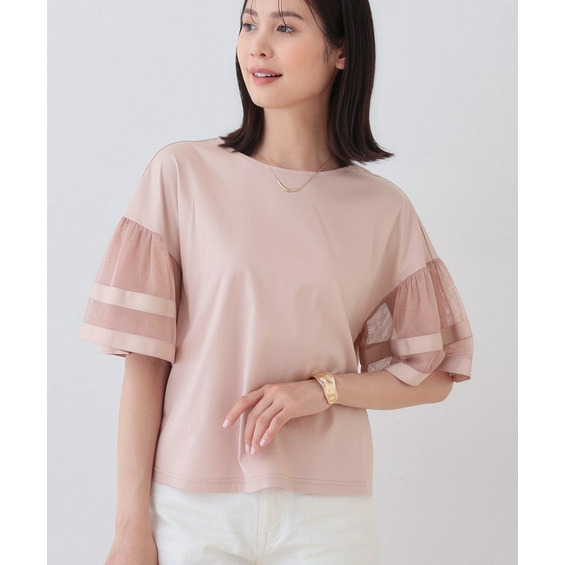 チュールスリーブカットソー