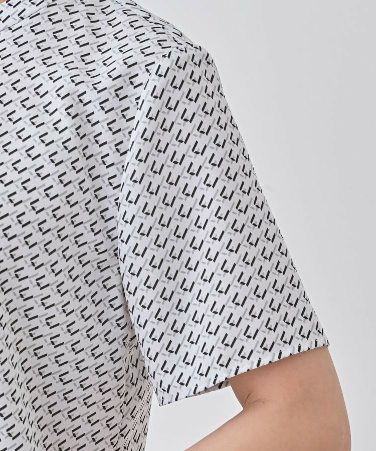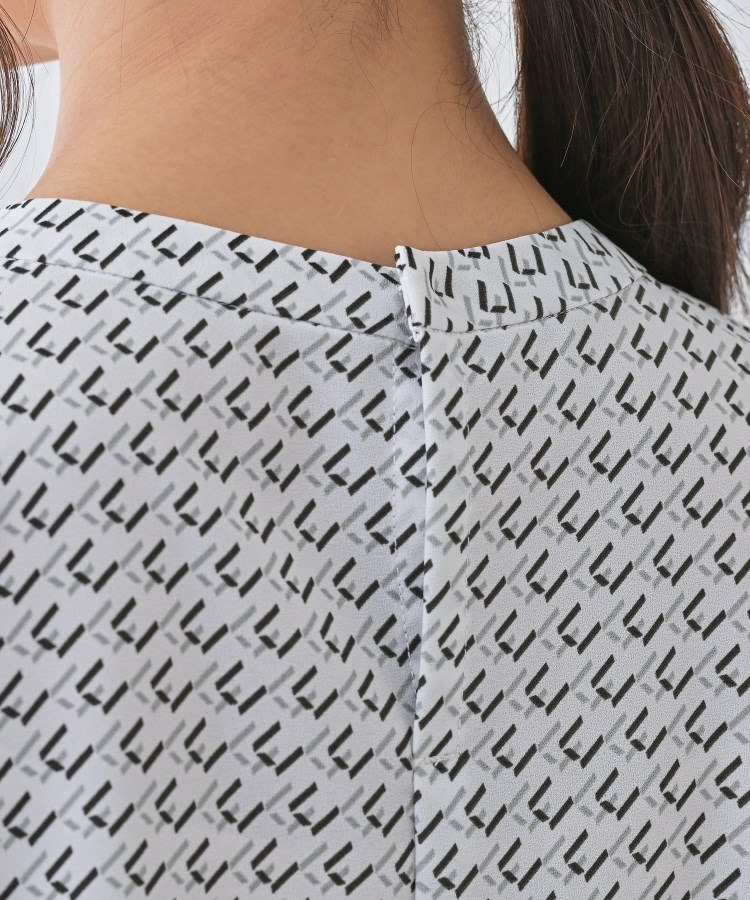 1枚でスタイリングが決まる幾何学柄と無地のブラウスです。
