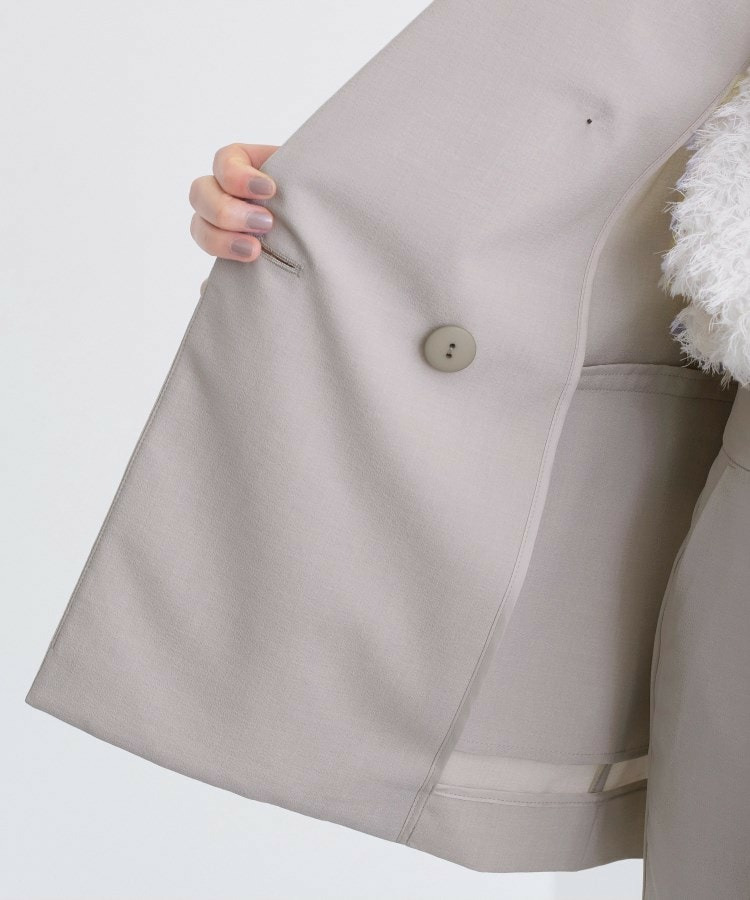 きちんと感も兼ね備えた見え感で、お仕事シーンから単品ジャケットスタイルまで汎用性の高いデザインです。