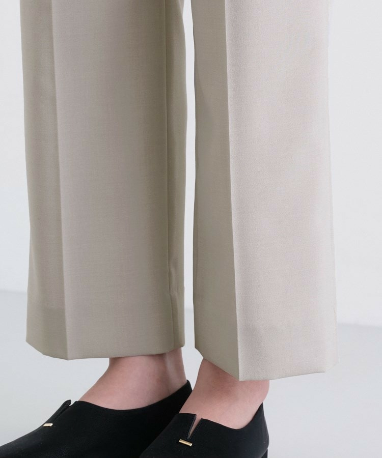 ワイドとスキニーの間のシルエットでボリュームトップスや長丈アイテム、ジャケットスタイルでもすっきりと合わせていただけます。
