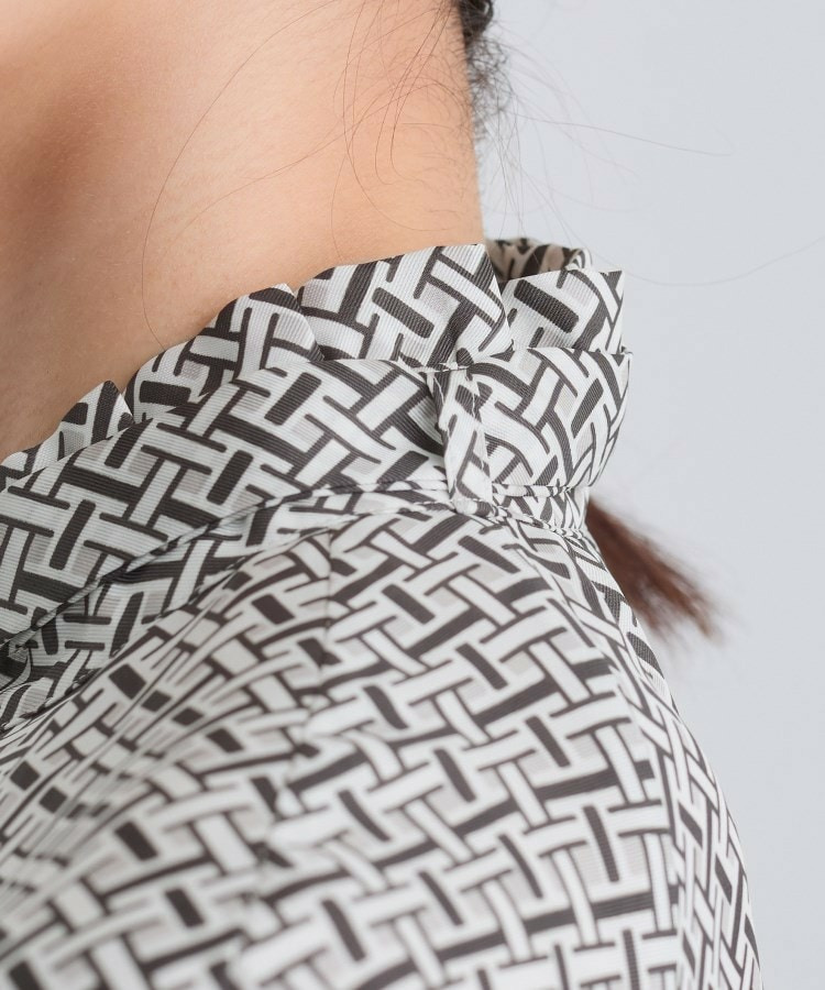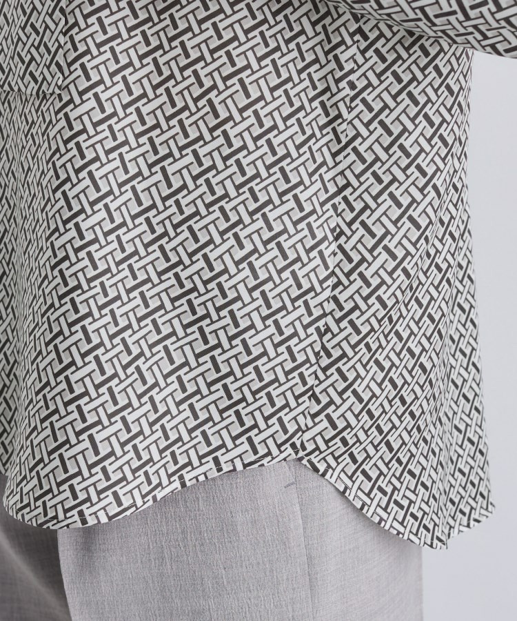 手書き風のジオメトリック柄ボウタイブラウスは、クラシカルな印象と華やかさで季節が変わる気分を盛り上げます。