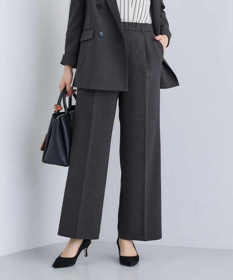 汎用性は高く、同素材ジャケット、ジレとのセットアップも可能です。