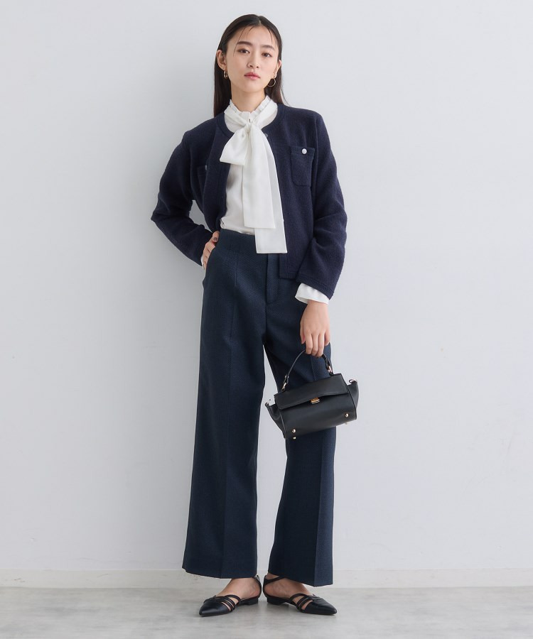 すっきり見えるショート丈で、ワイドパンツやワンピースとの相性も◎。
