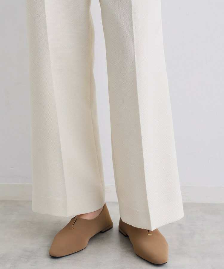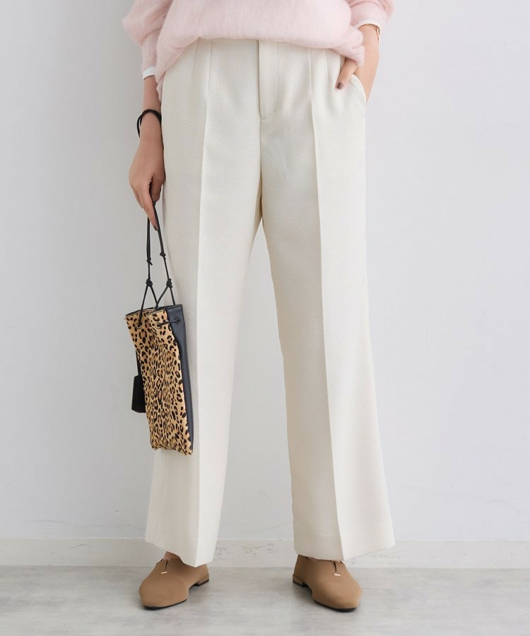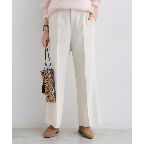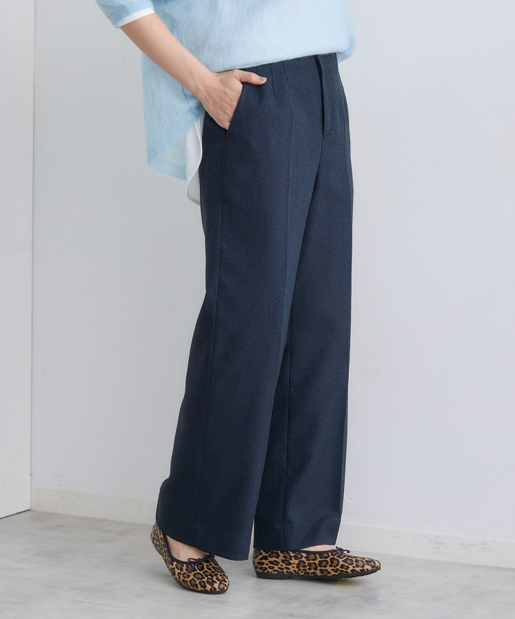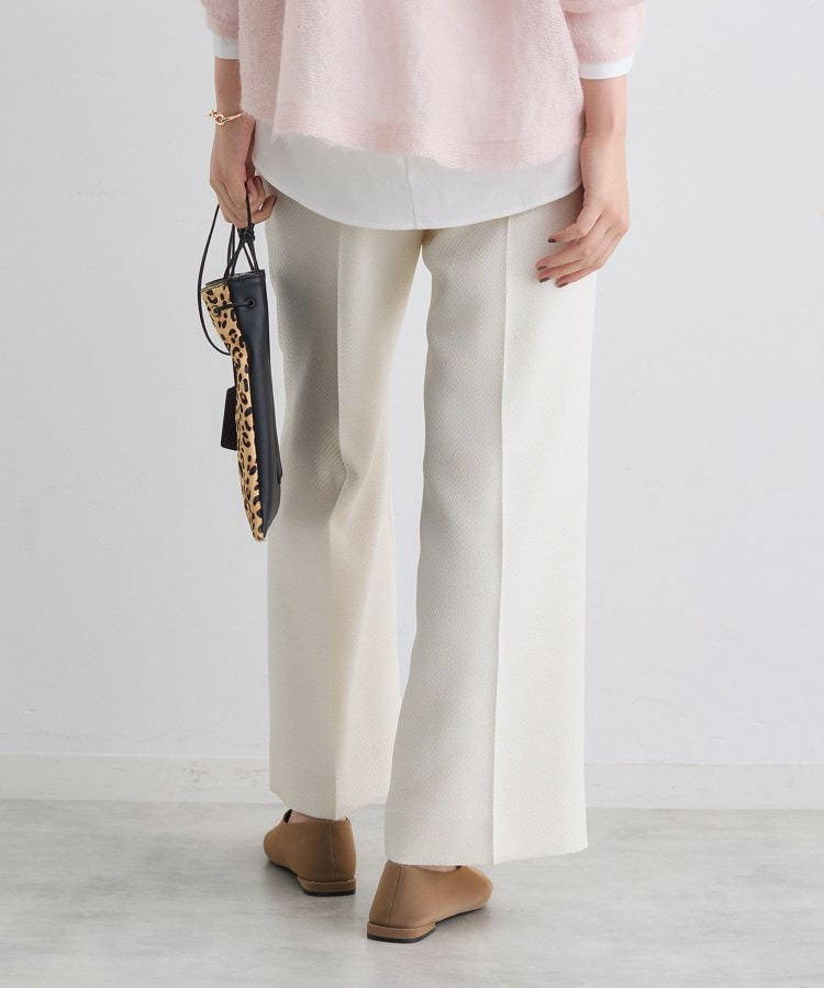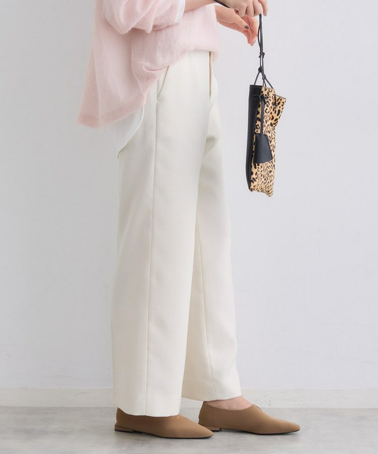トップスをインする際にもウエスト位置が高く見えるベルトレスでスタイルアップ効果も期待できるシルエットデザインです。