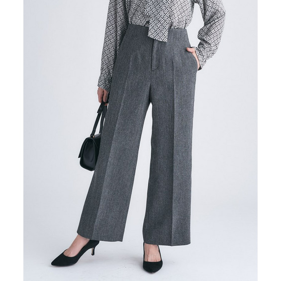 【褒められパンツ/ウール調素材】ラメ混ワイドパンツ