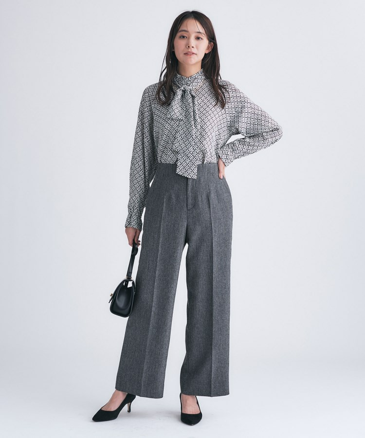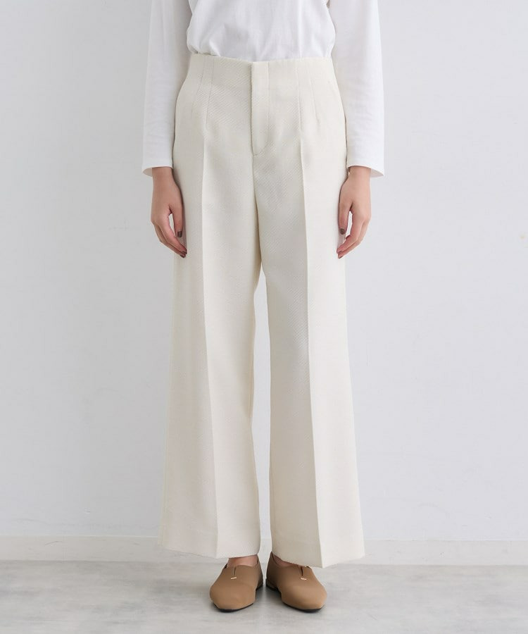 ウール調合繊で今すぐ着れる華やかワイドパンツです。