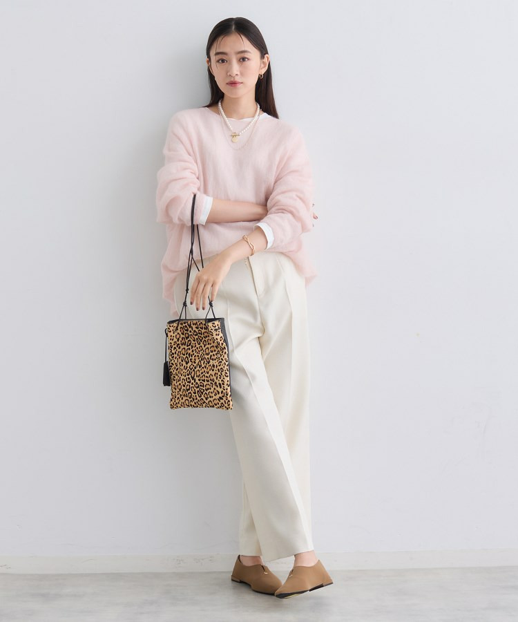 ウール調素材で冬質ニットとの相性も良く端境期から冬、春にかけてと長く合わせていただけます。