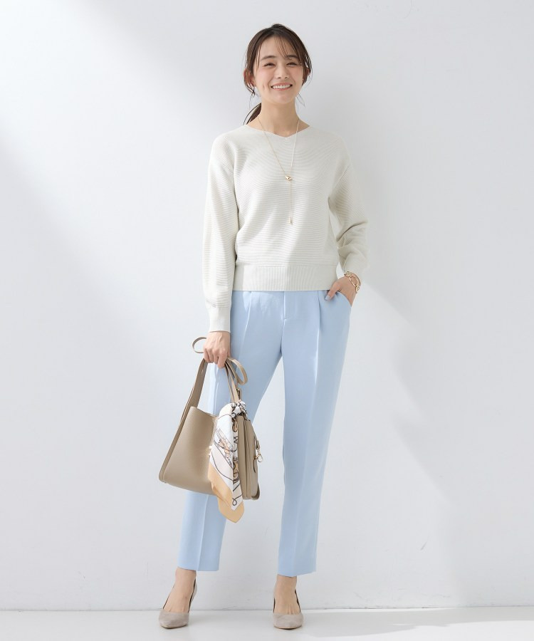 女性らしい優しい印象のプルオーバーは、ロングスカートやワイドボトムスとも好印象。