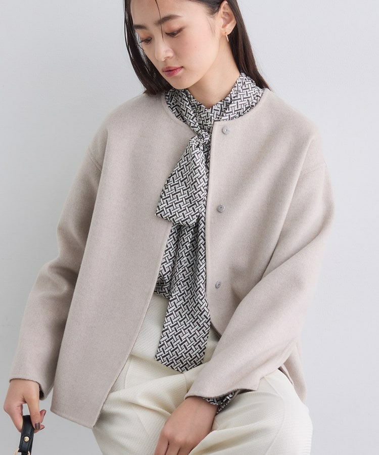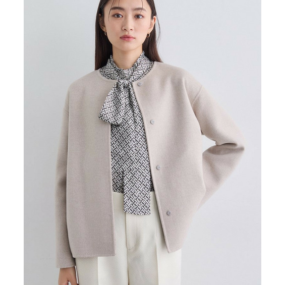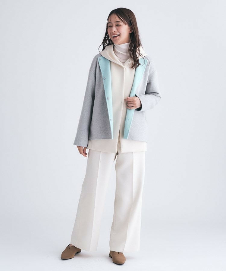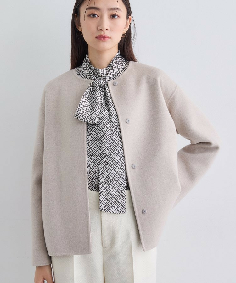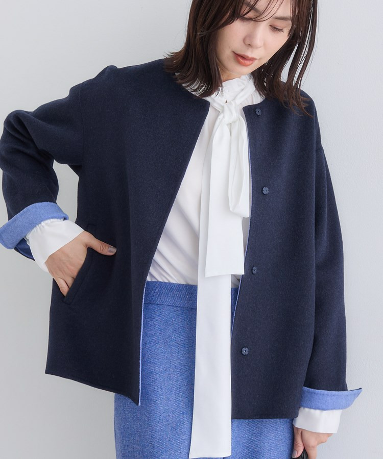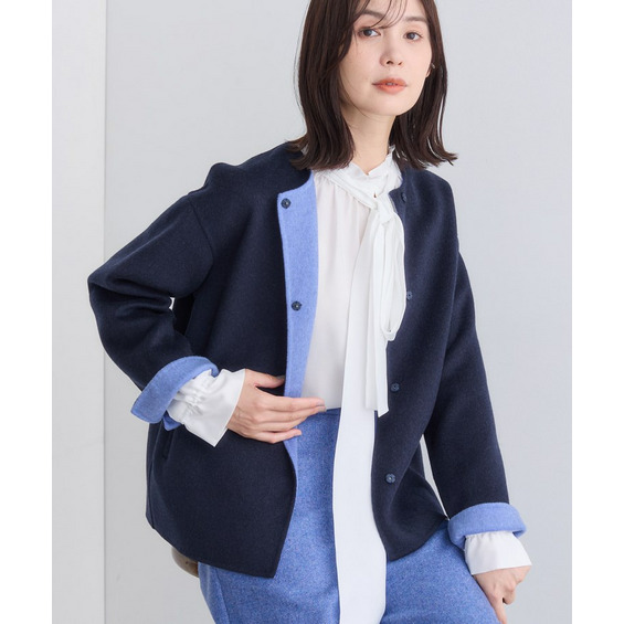 • 【配色デザイン/ショート丈】ウールリバー ノーカラーコート23