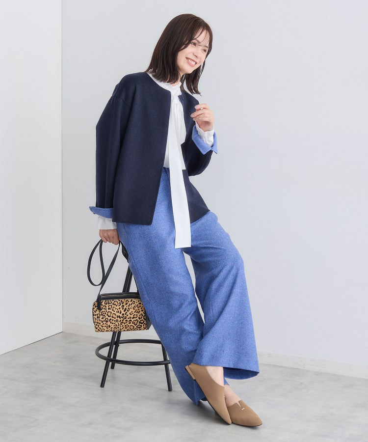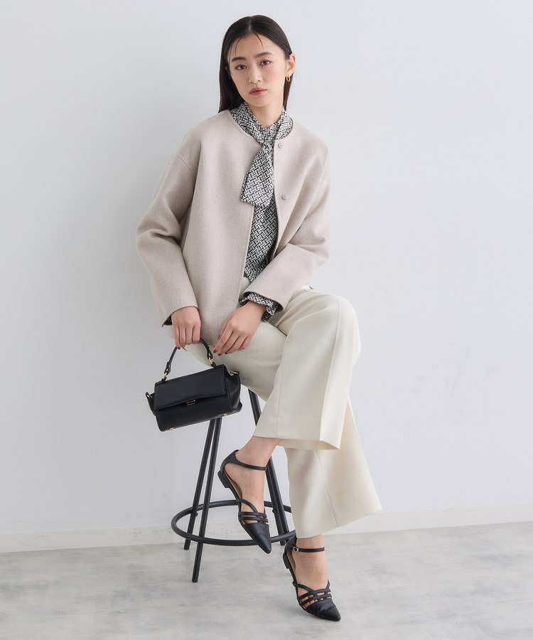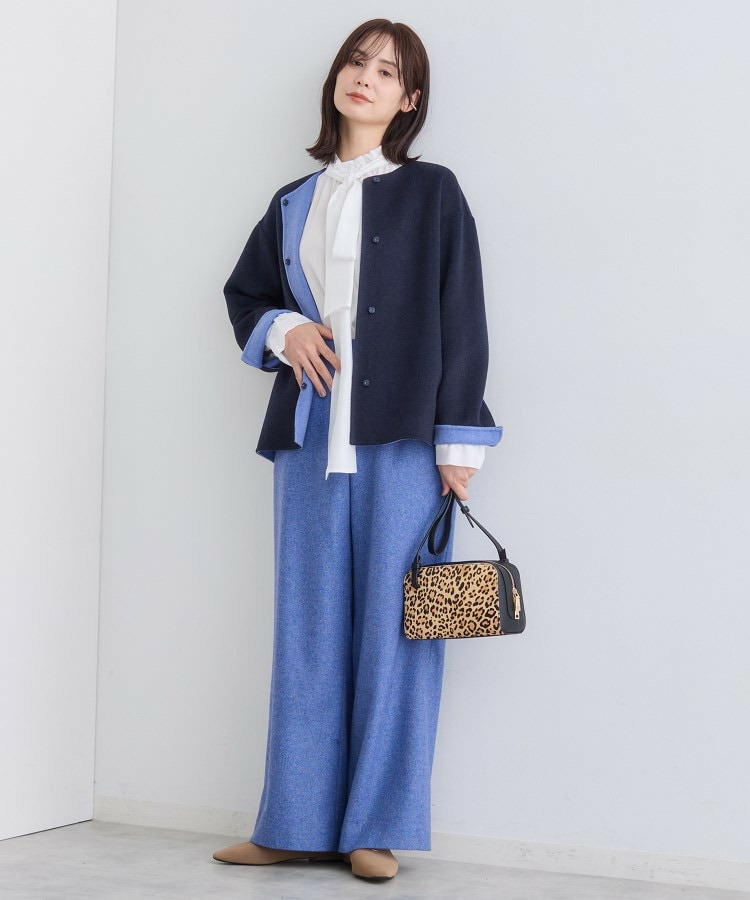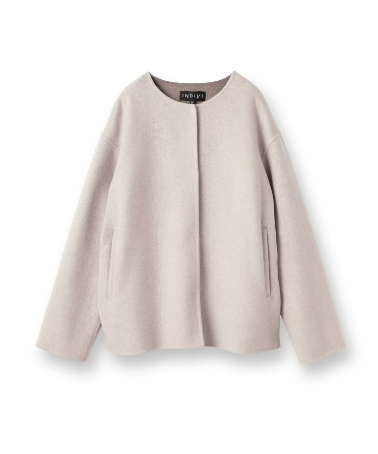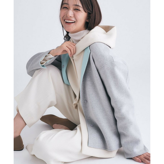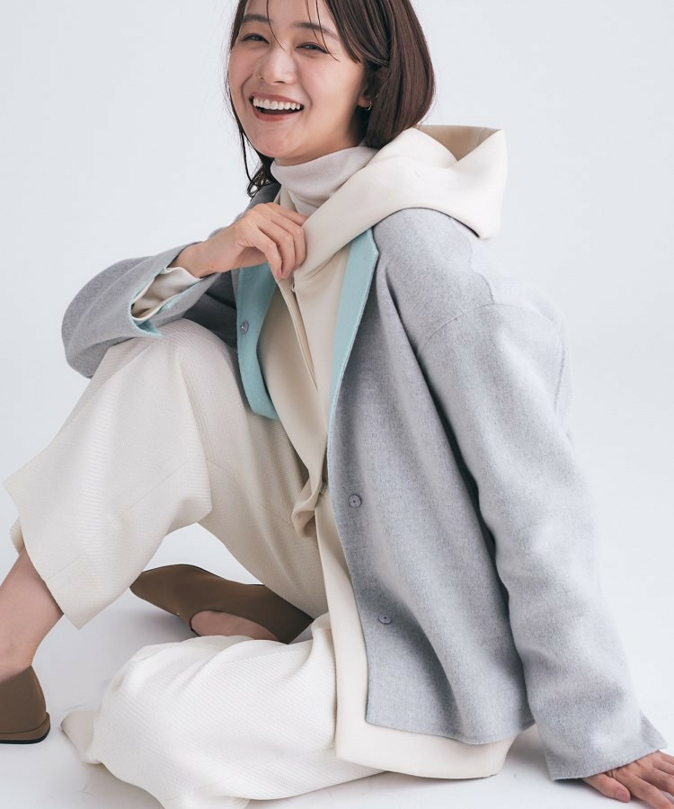 • 【配色デザイン/ショート丈】ウールリバー ノーカラーコート23