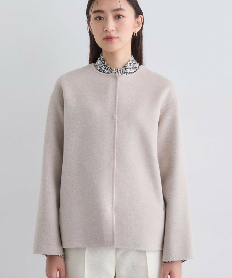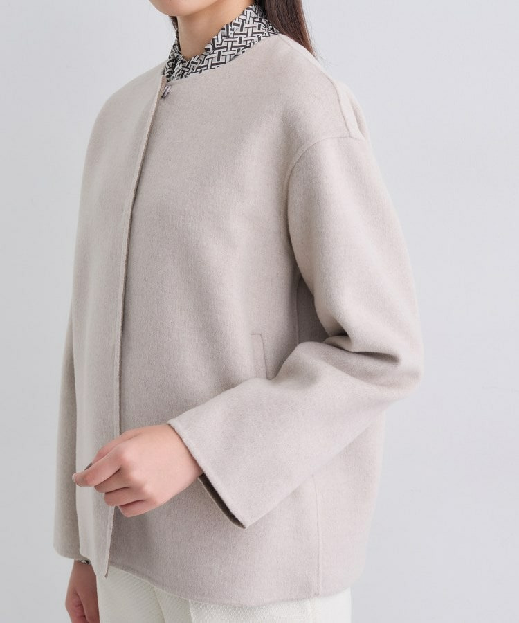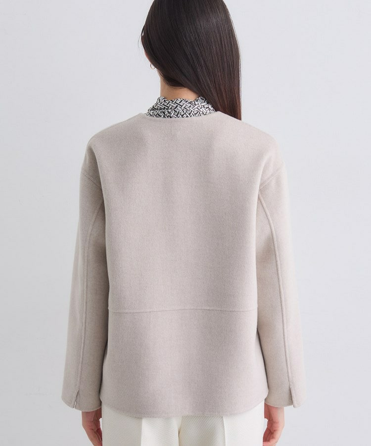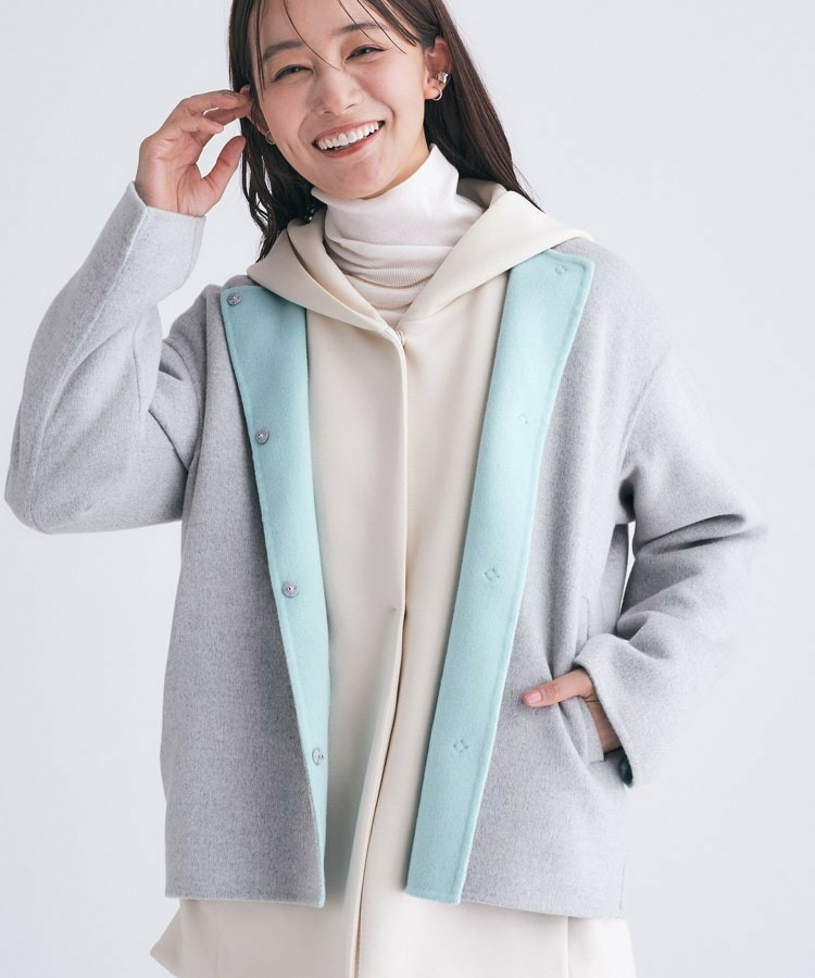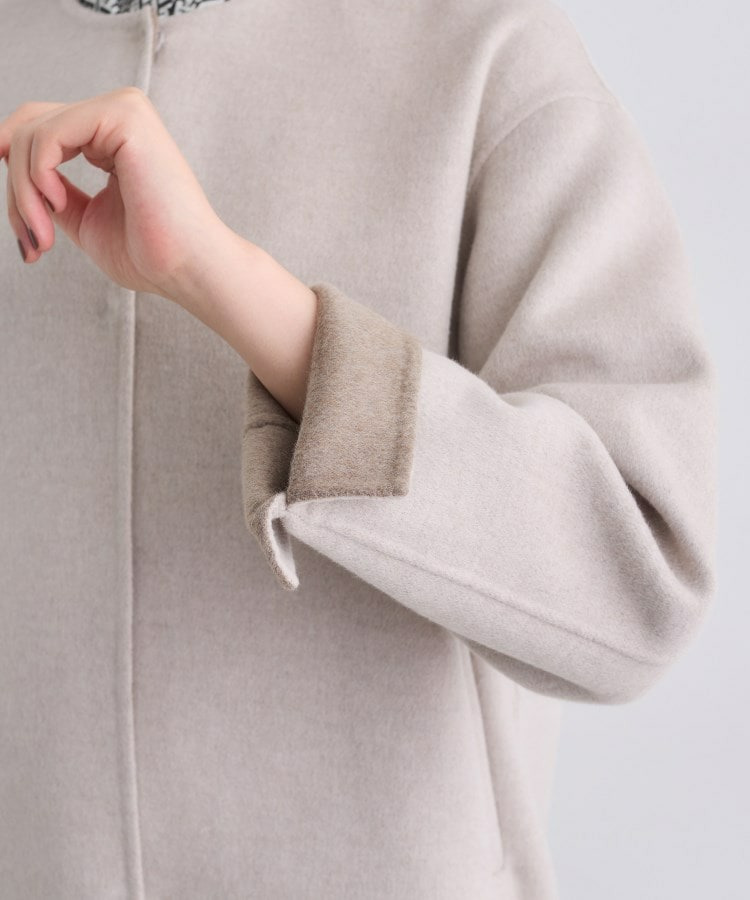 • 【配色デザイン/ショート丈】ウールリバー ノーカラーコート17