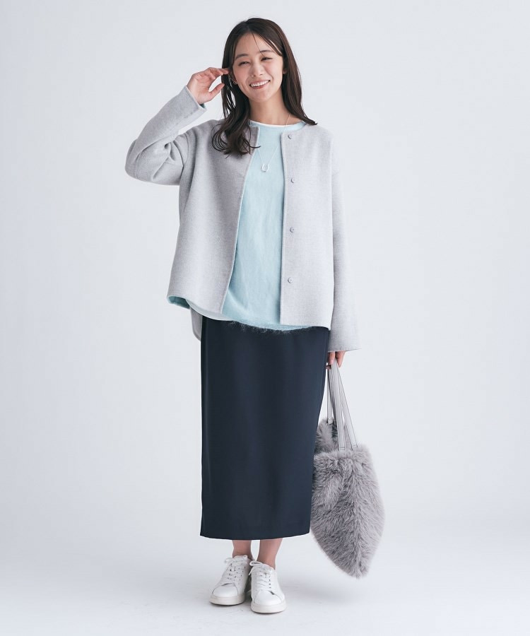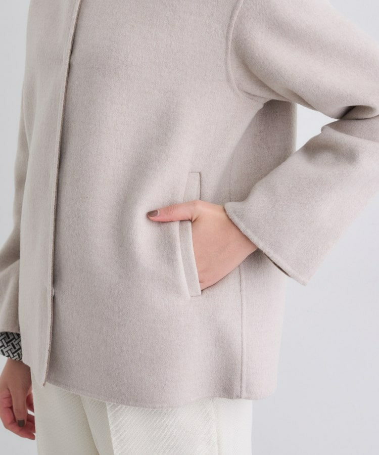 • 【配色デザイン/ショート丈】ウールリバー ノーカラーコート20