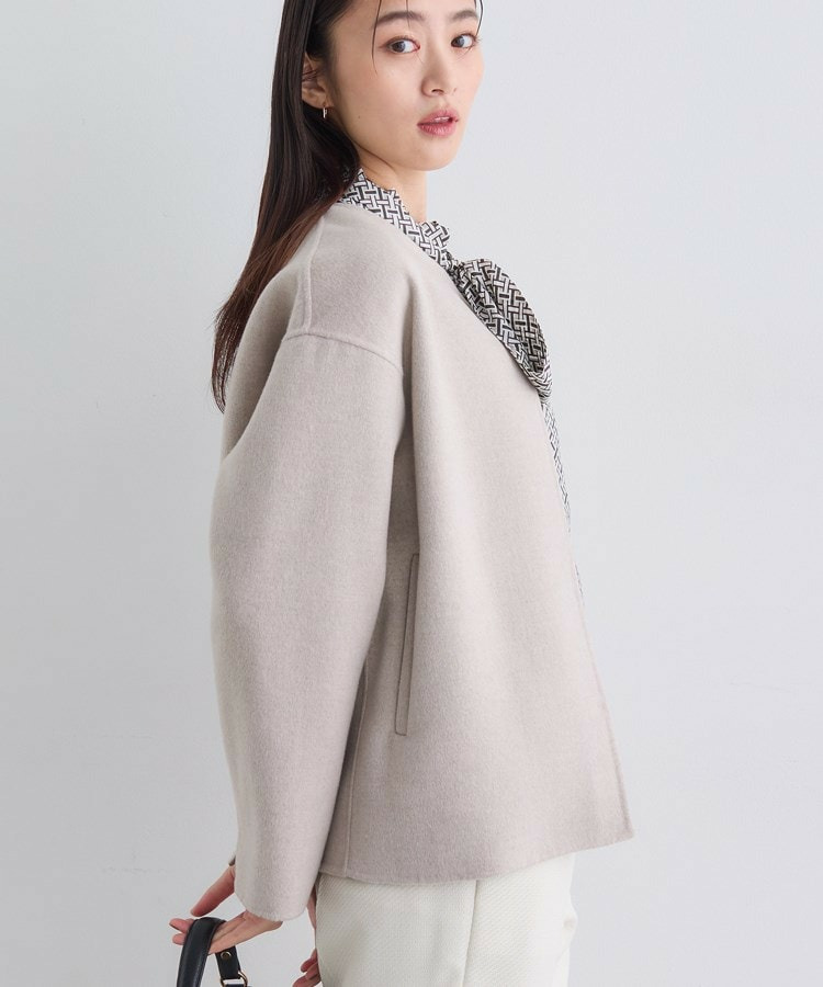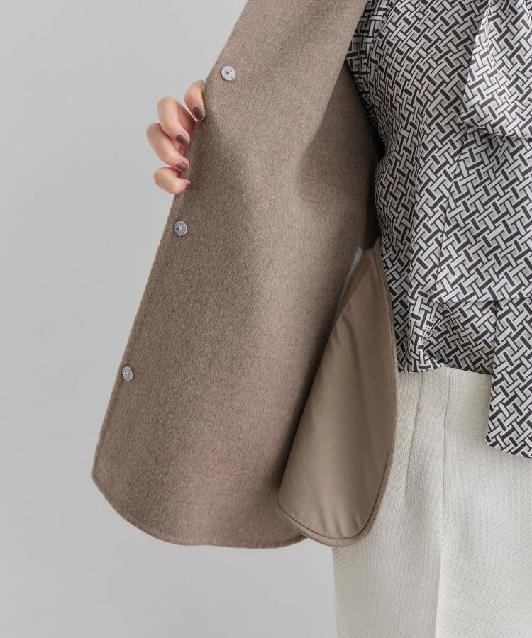 • 【配色デザイン/ショート丈】ウールリバー ノーカラーコート10