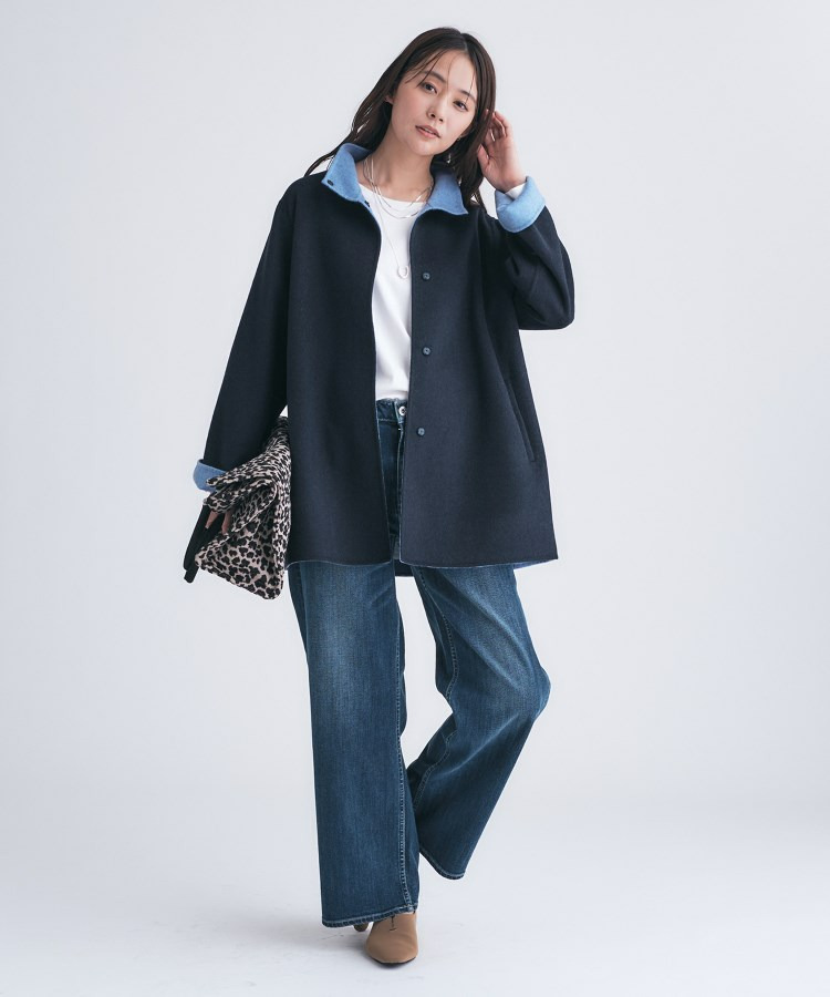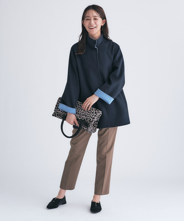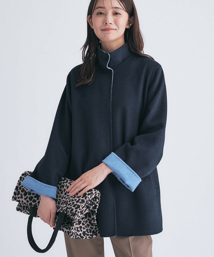 スタンドカラーはすべて閉めても顔回りから程よく離れた抜け感あるシルエットです。