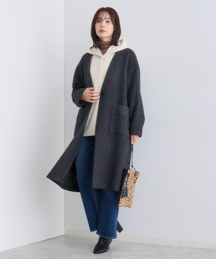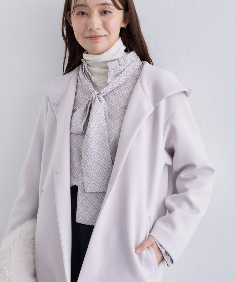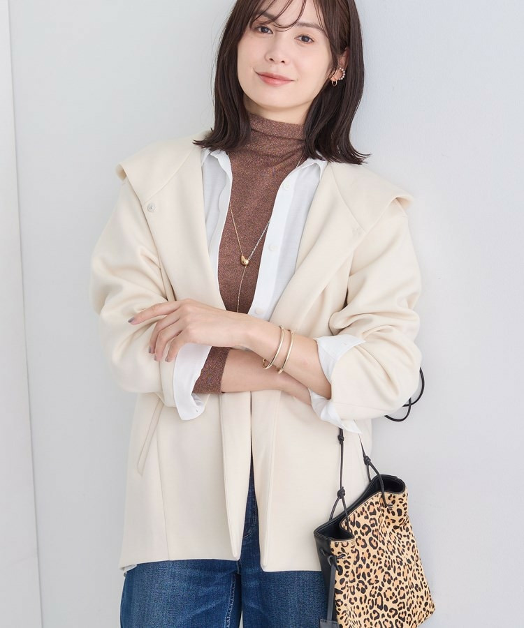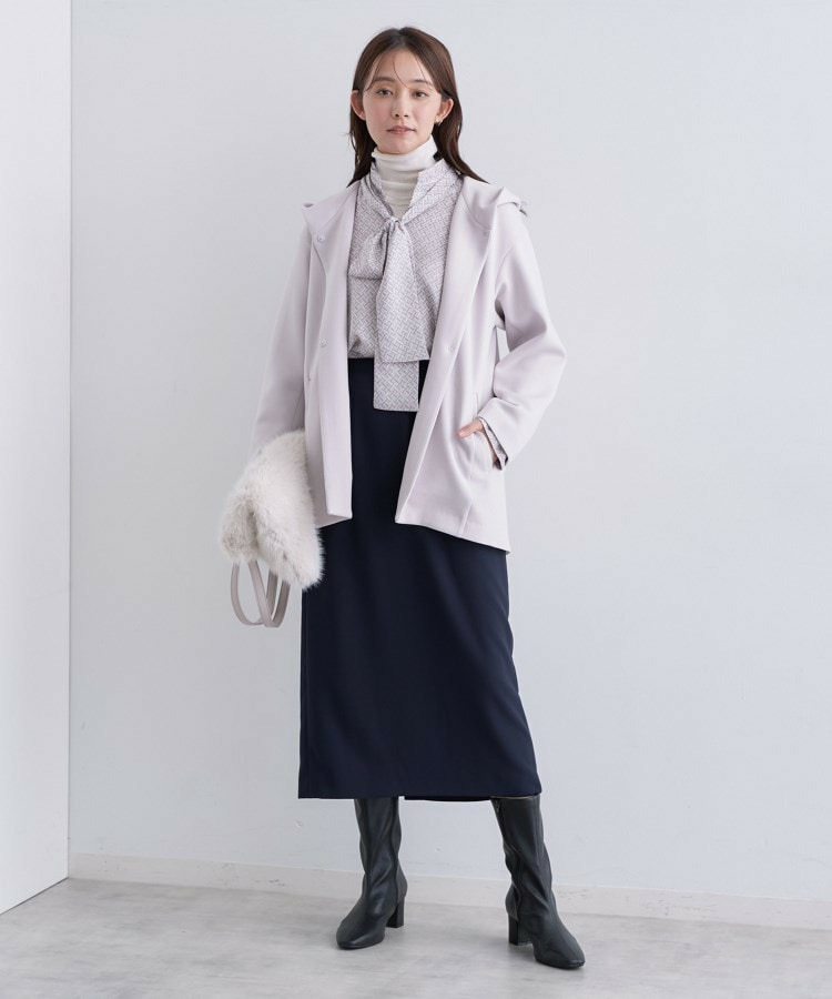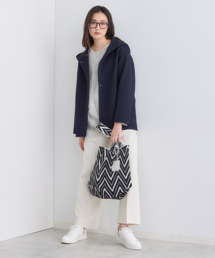 キレイめな仕立てにすることでフードデザインでもカジュアルすぎず合わせていただけます。