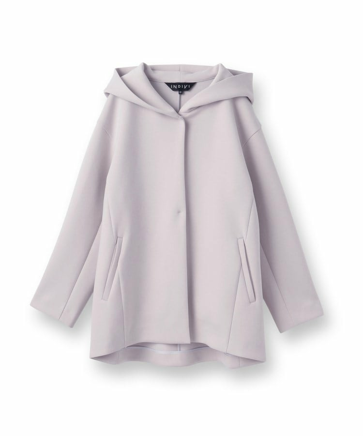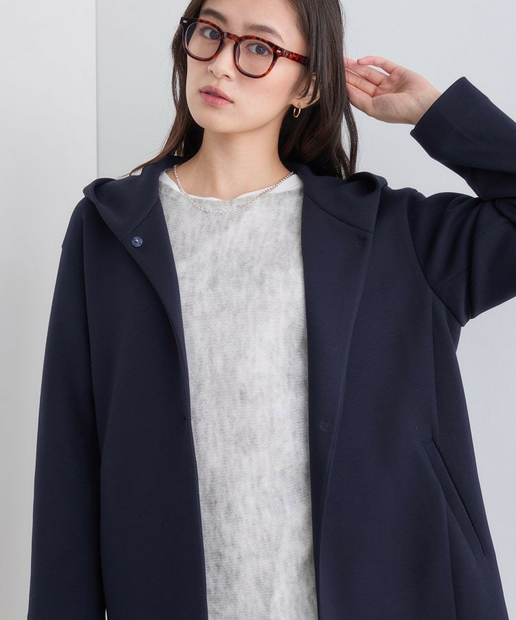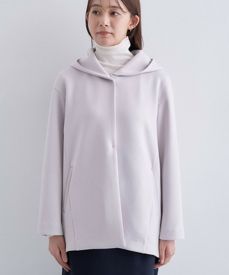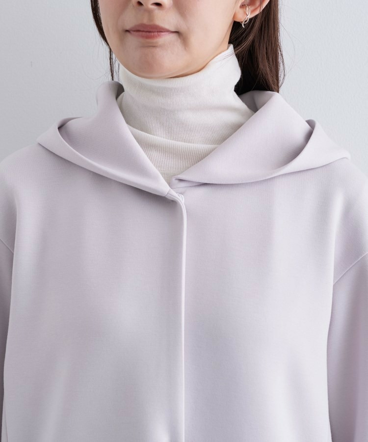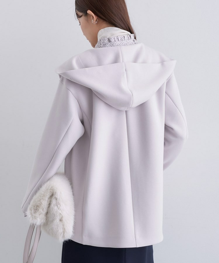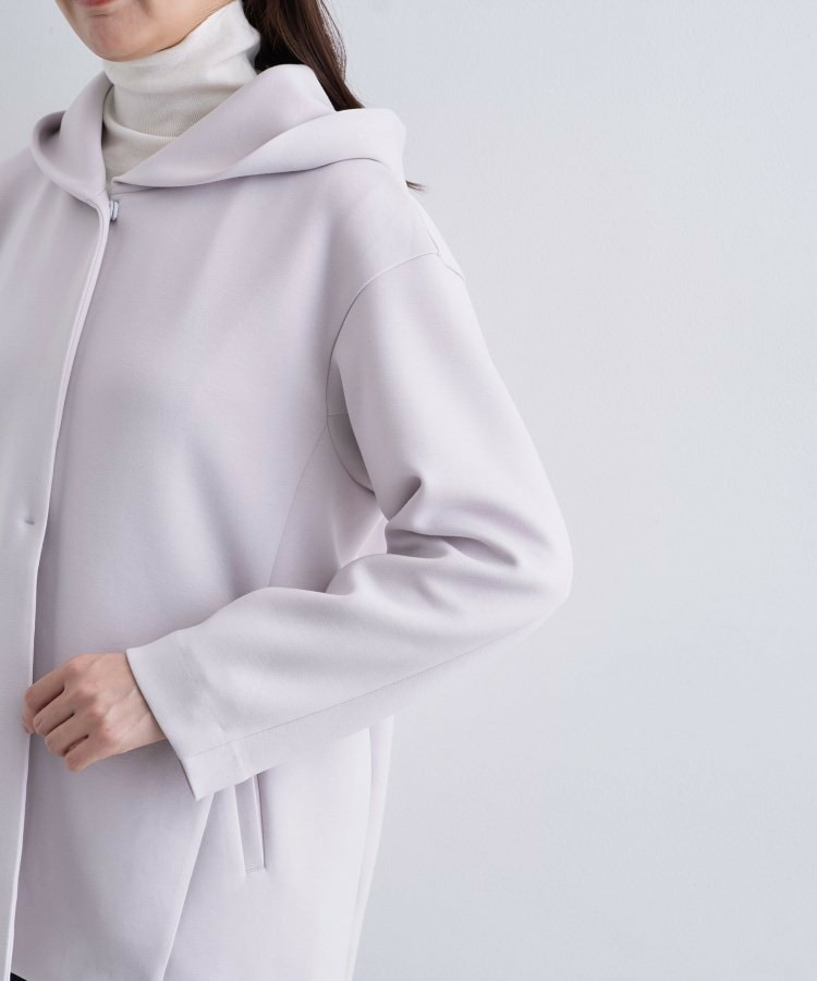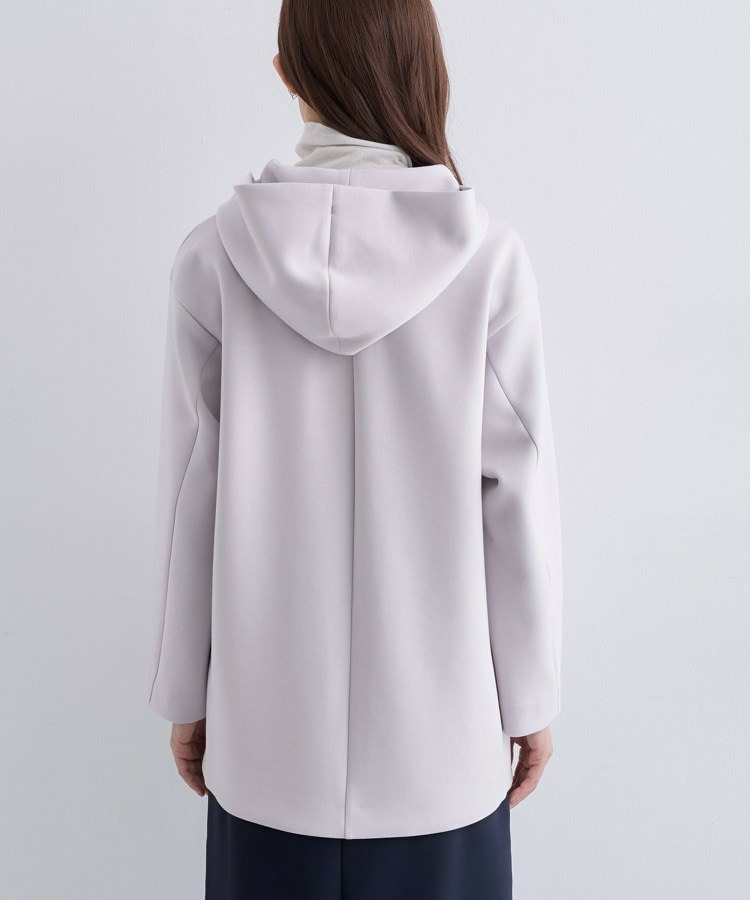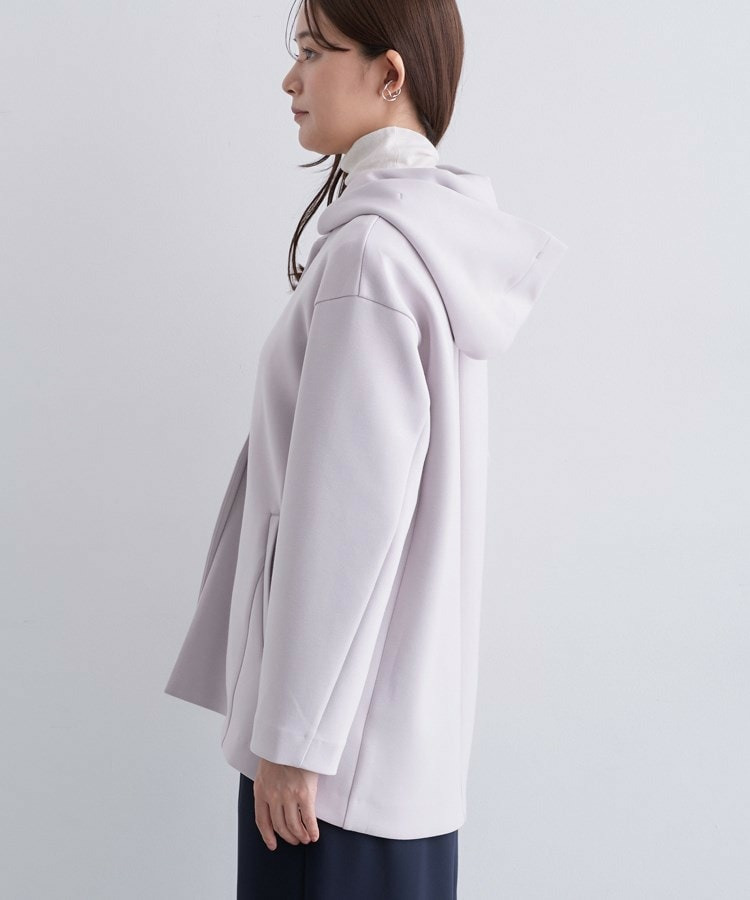 ふっくらしたスポンディッシュなタッチが特徴のフーディー型アウターです。