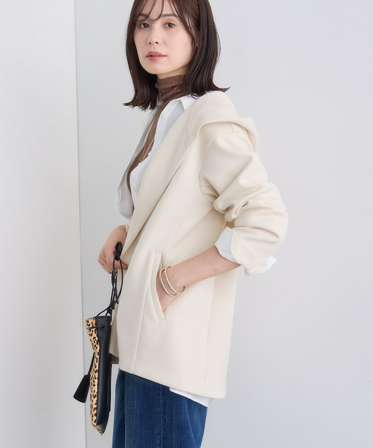 アウターとしてはもちろん、冬場にかけてはコートINとしてレイヤードスタイルも楽しめる一枚です。