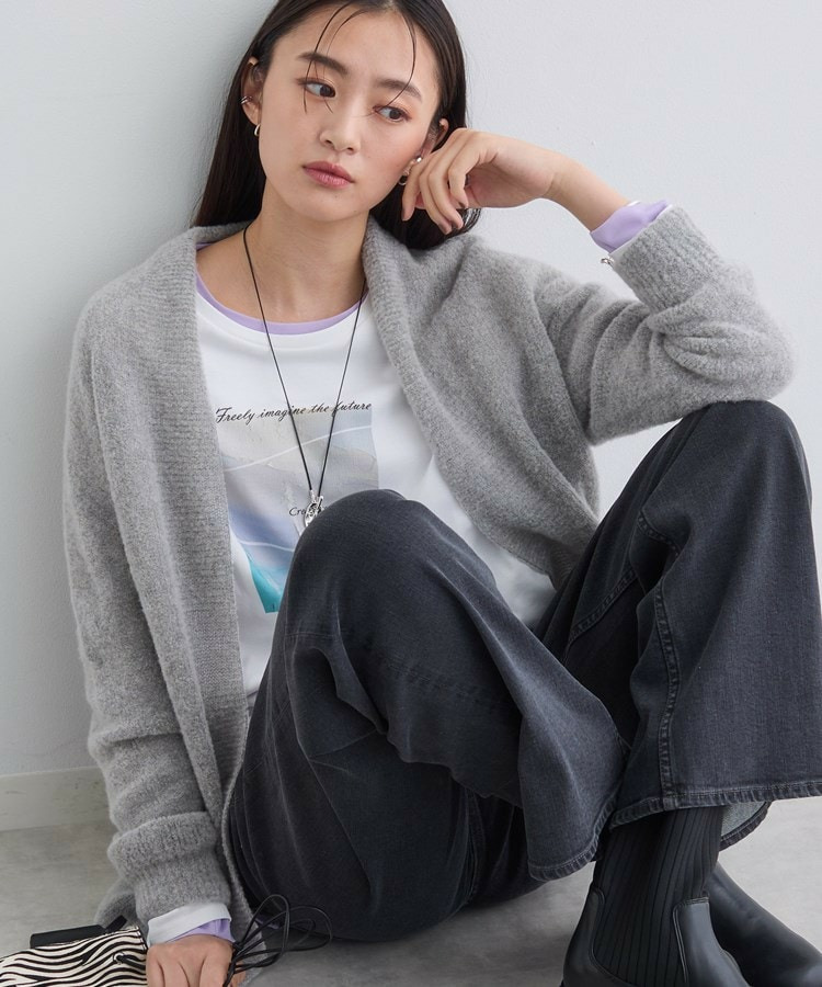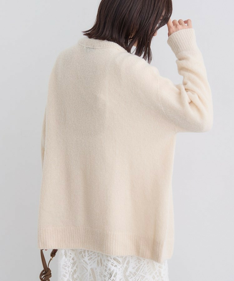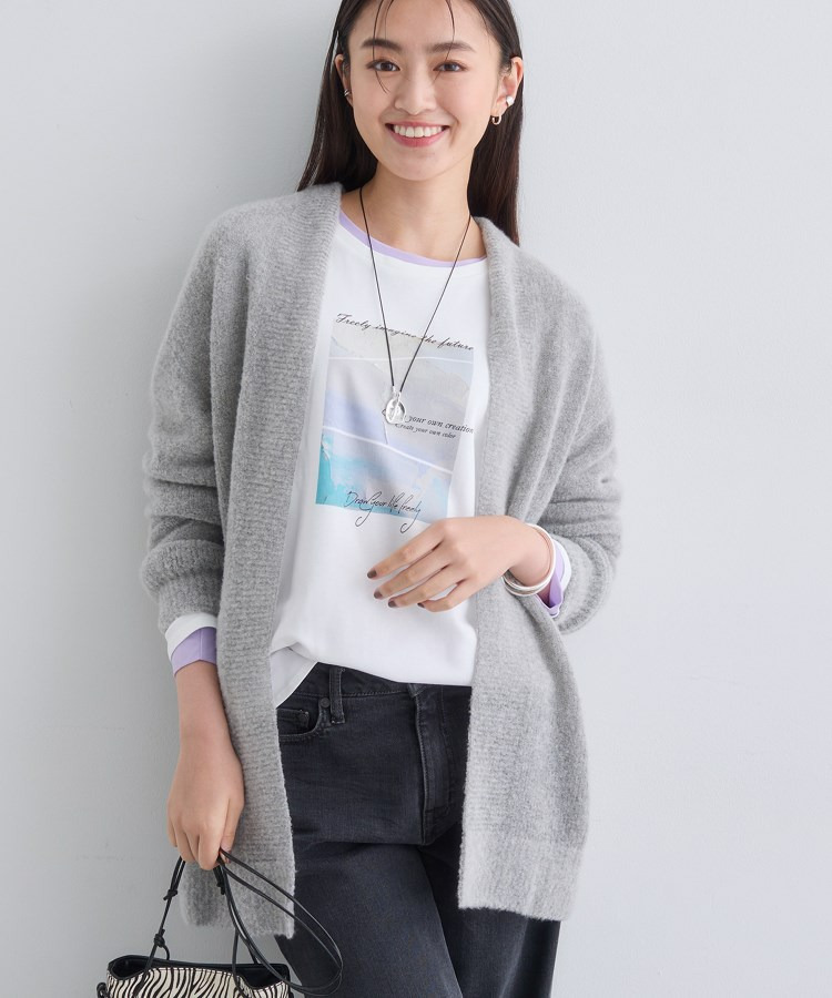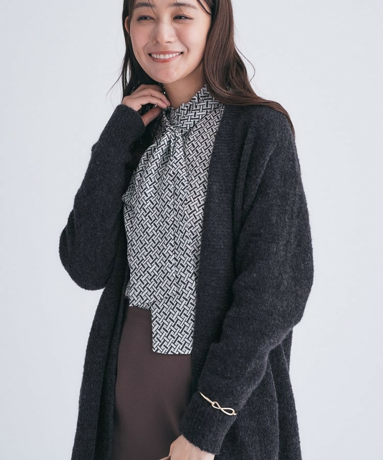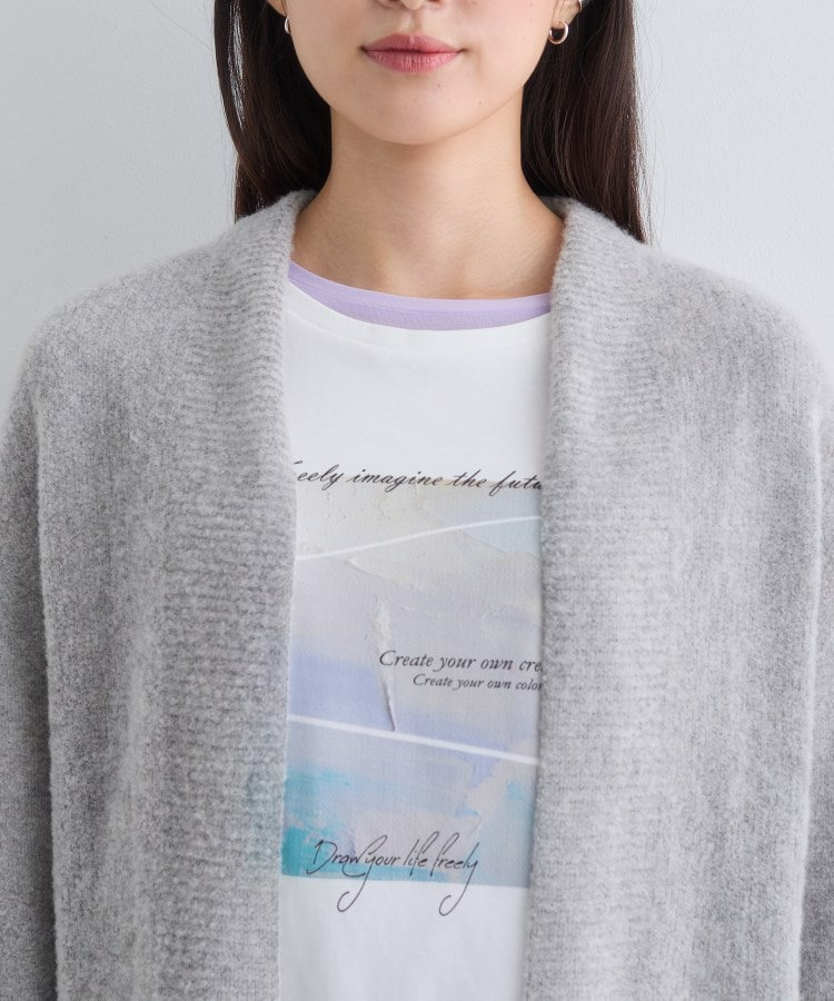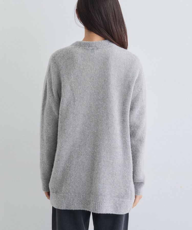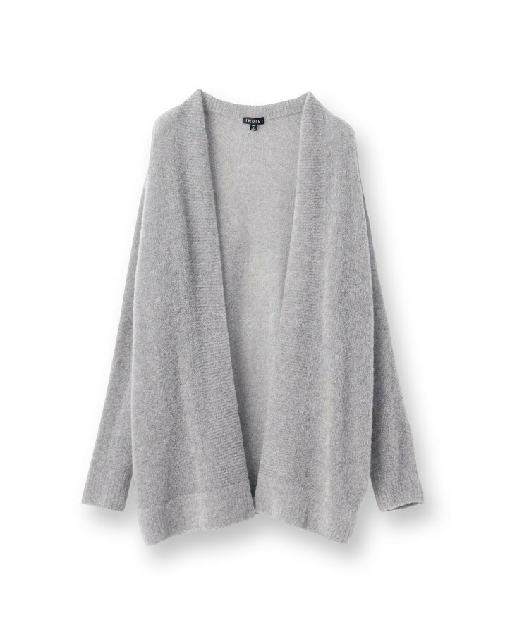 エアリーで軽いブークレ糸を使用したベーシックな着流しカーディガンです。