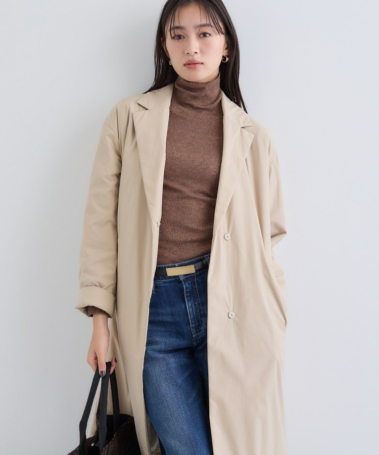 チェスター型のロングタイプは、モードでシックな印象を演出します。