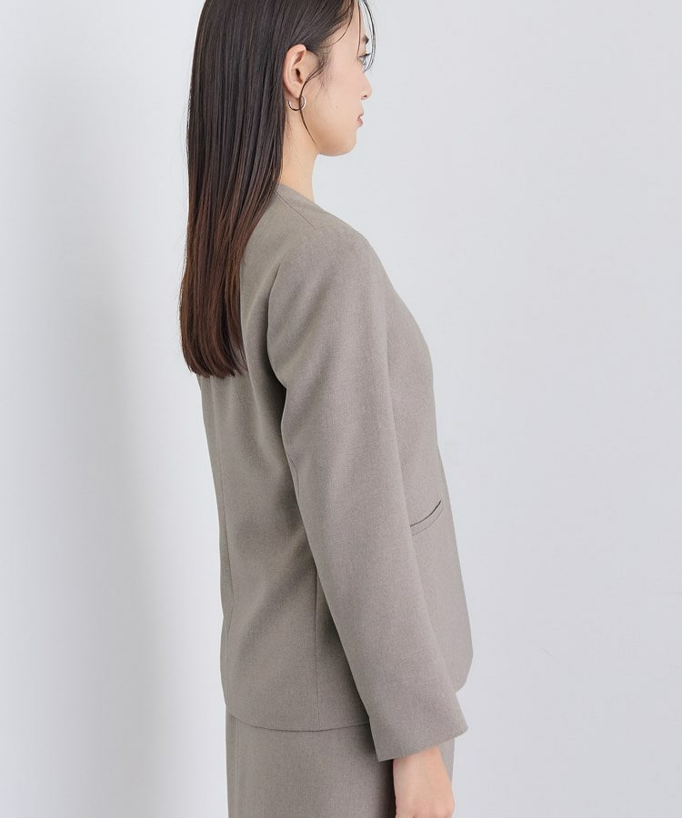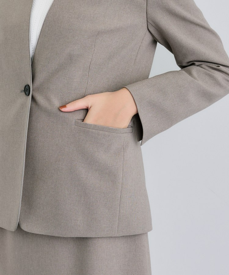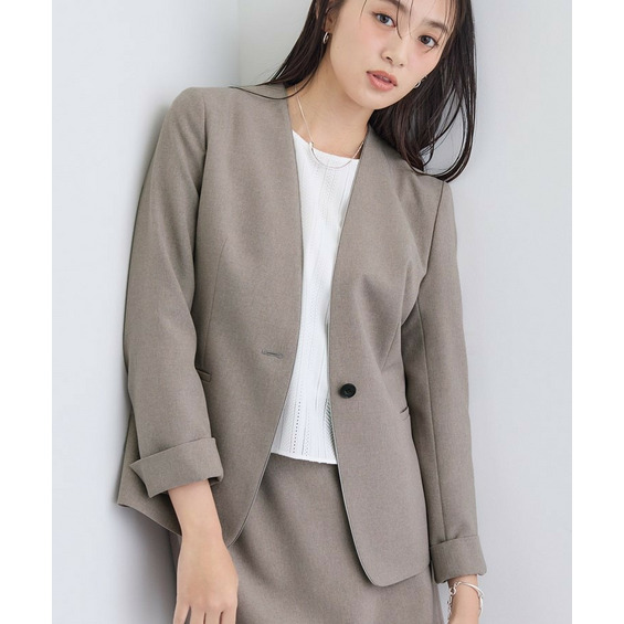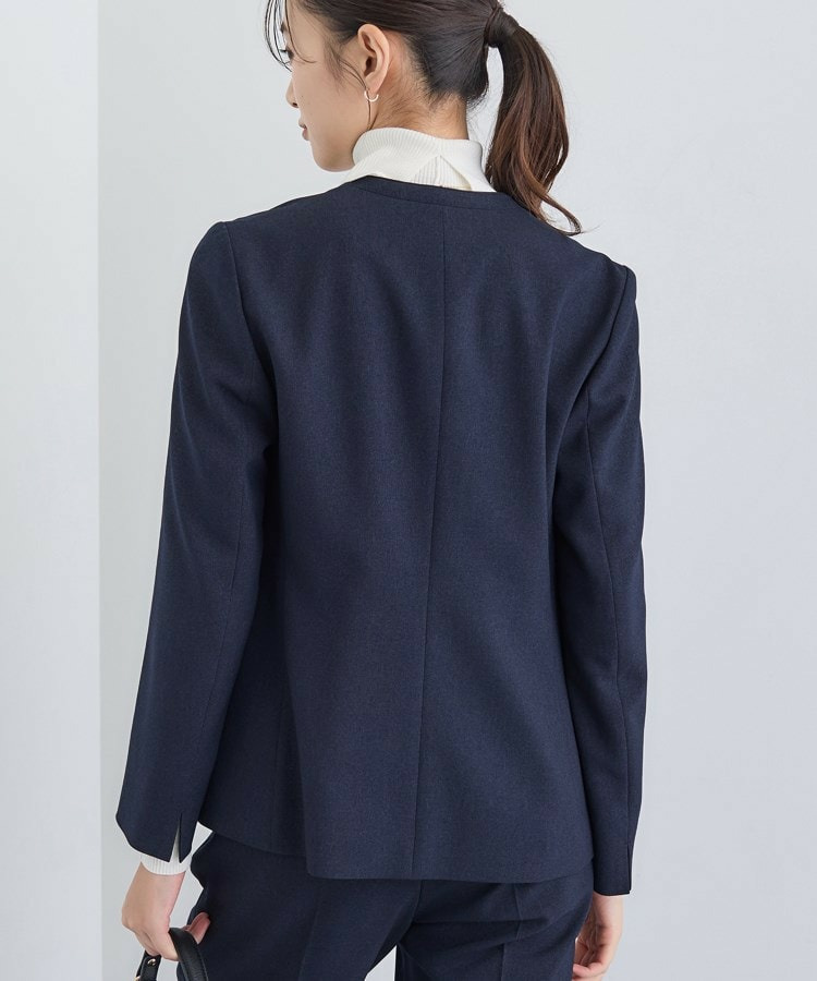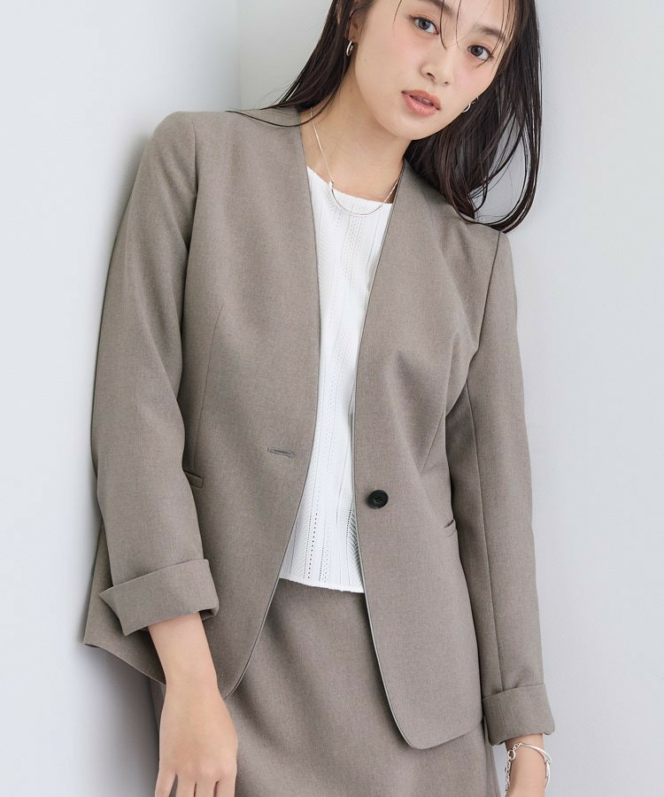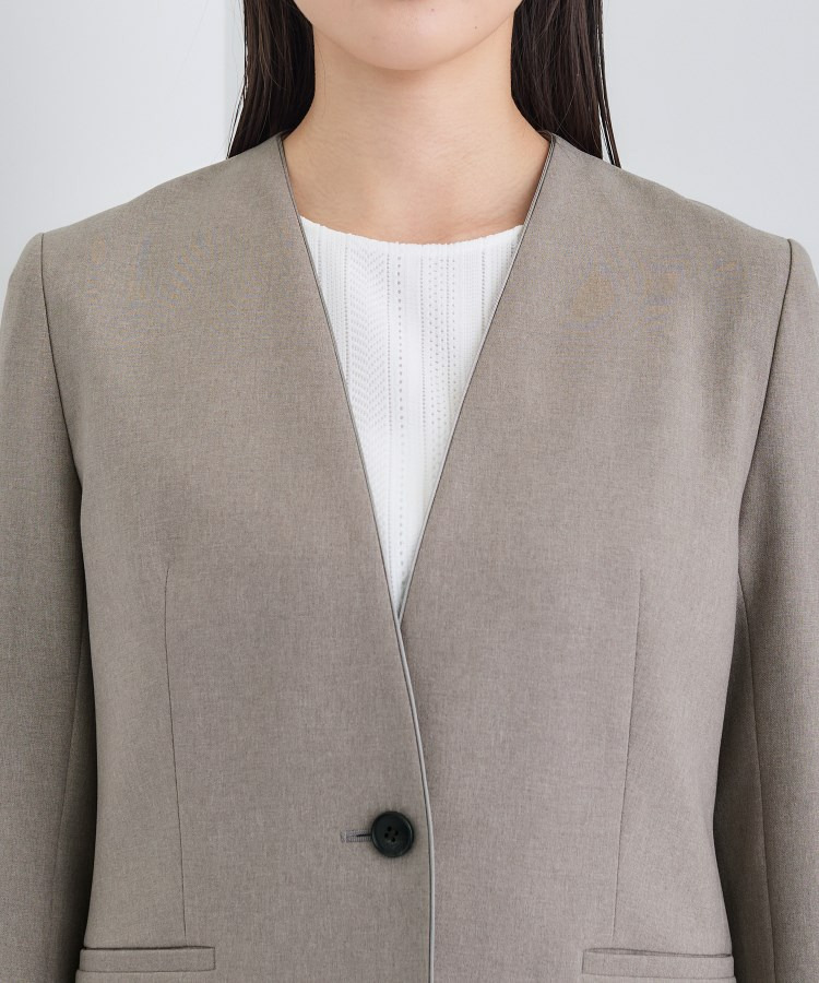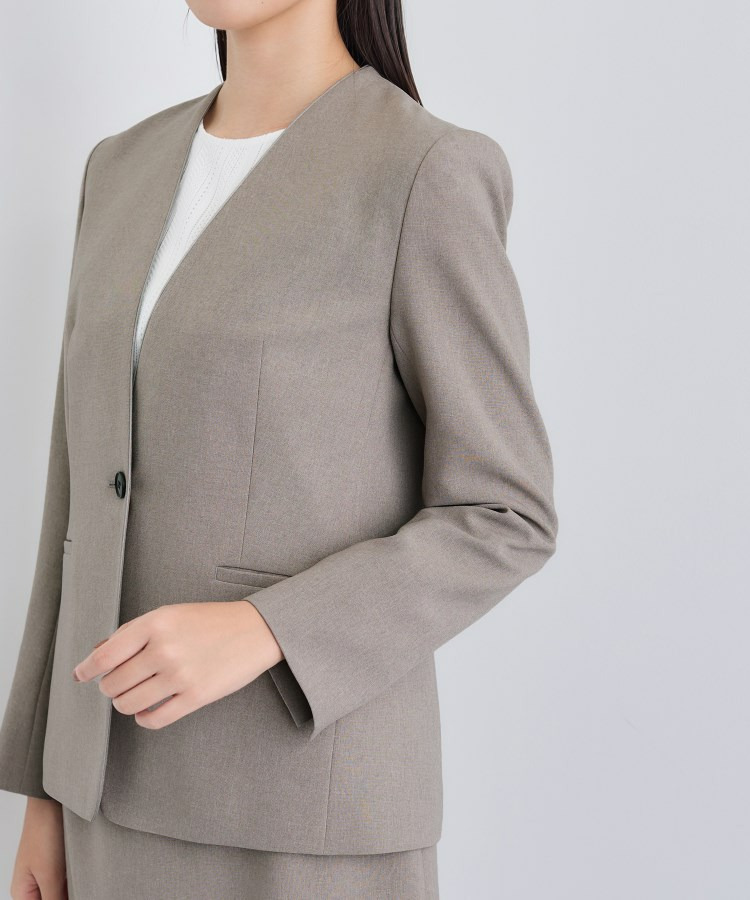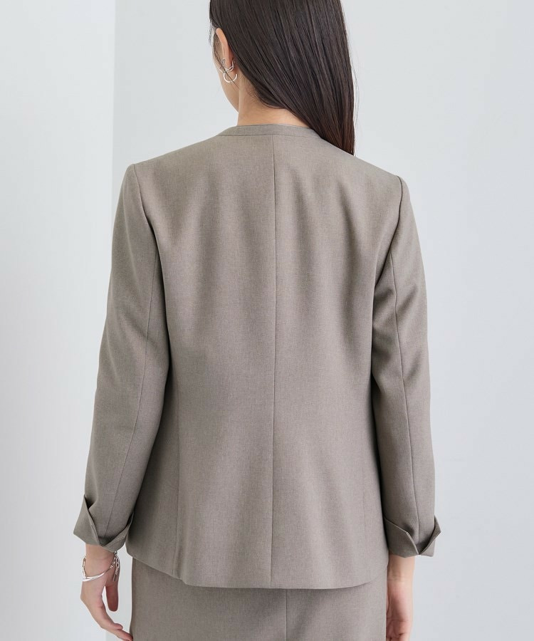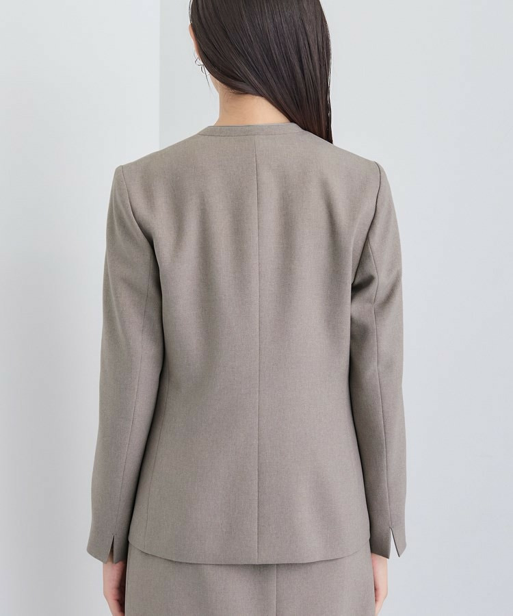【洗える/通勤/スーツ】メランジストレッチ ノーカラージャケット