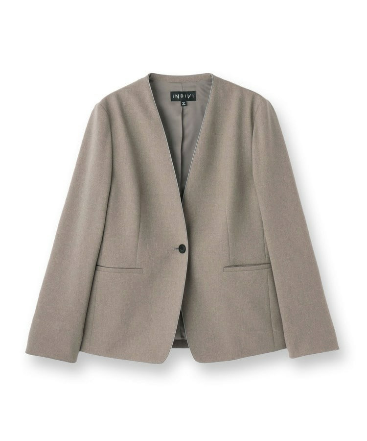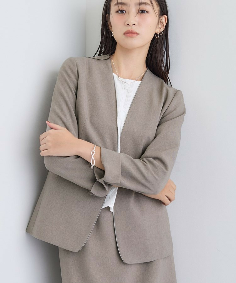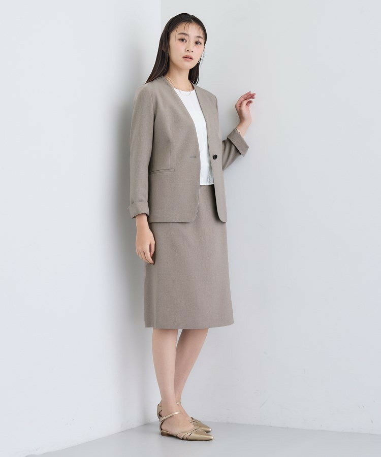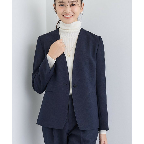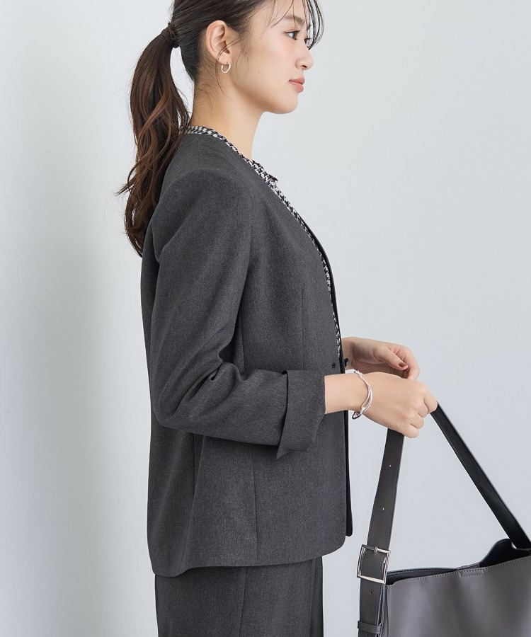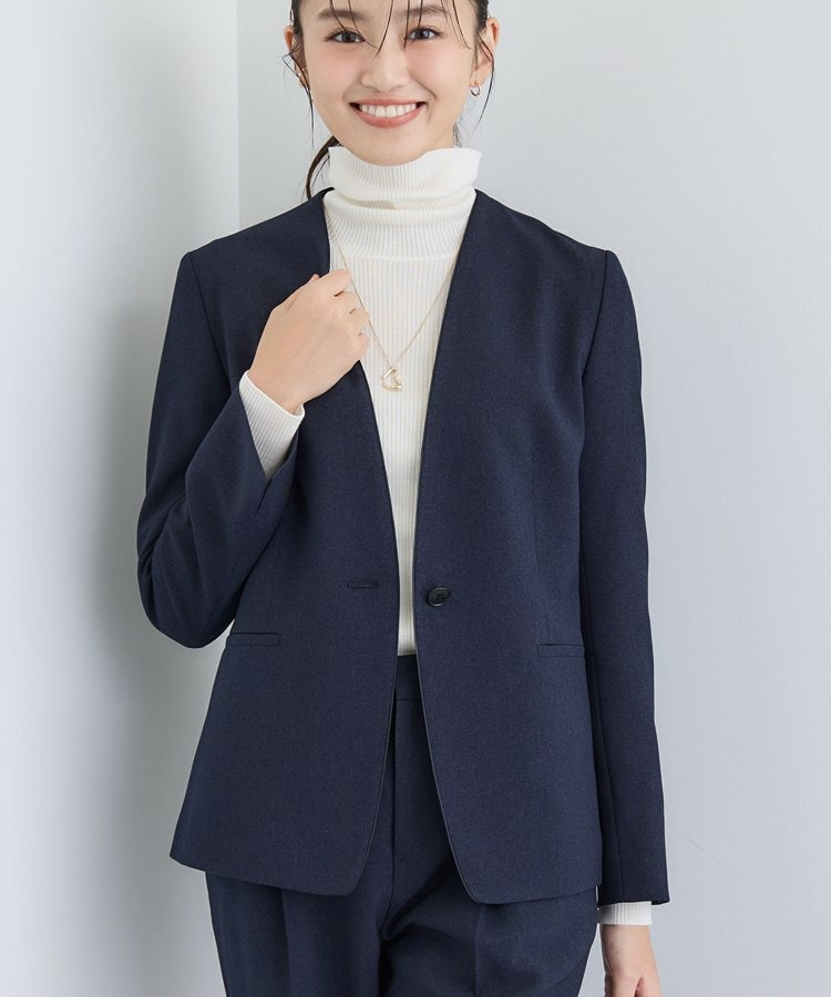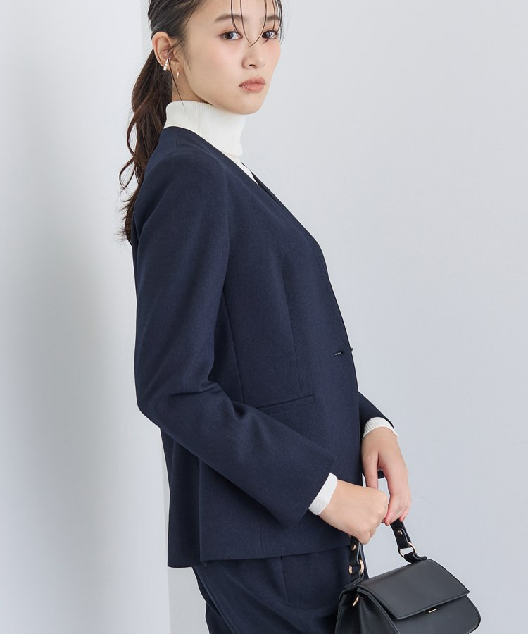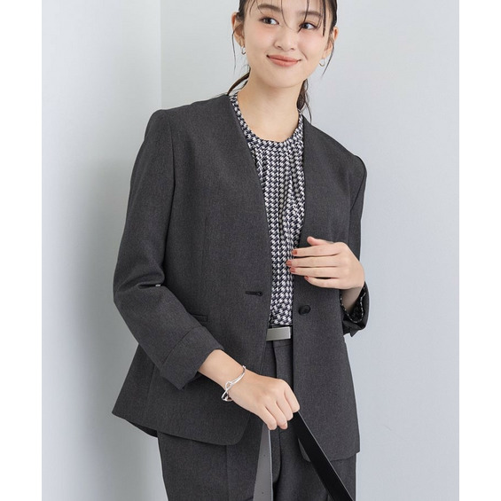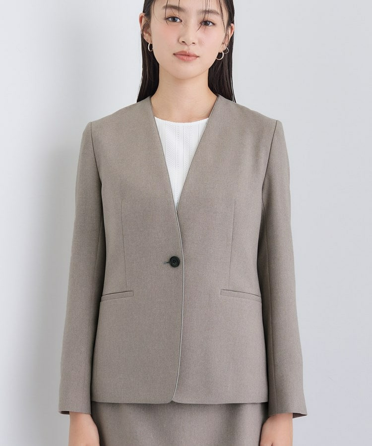 【洗える/通勤/スーツ】メランジストレッチ ノーカラージャケット