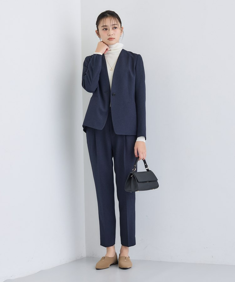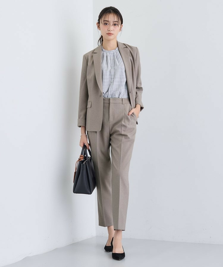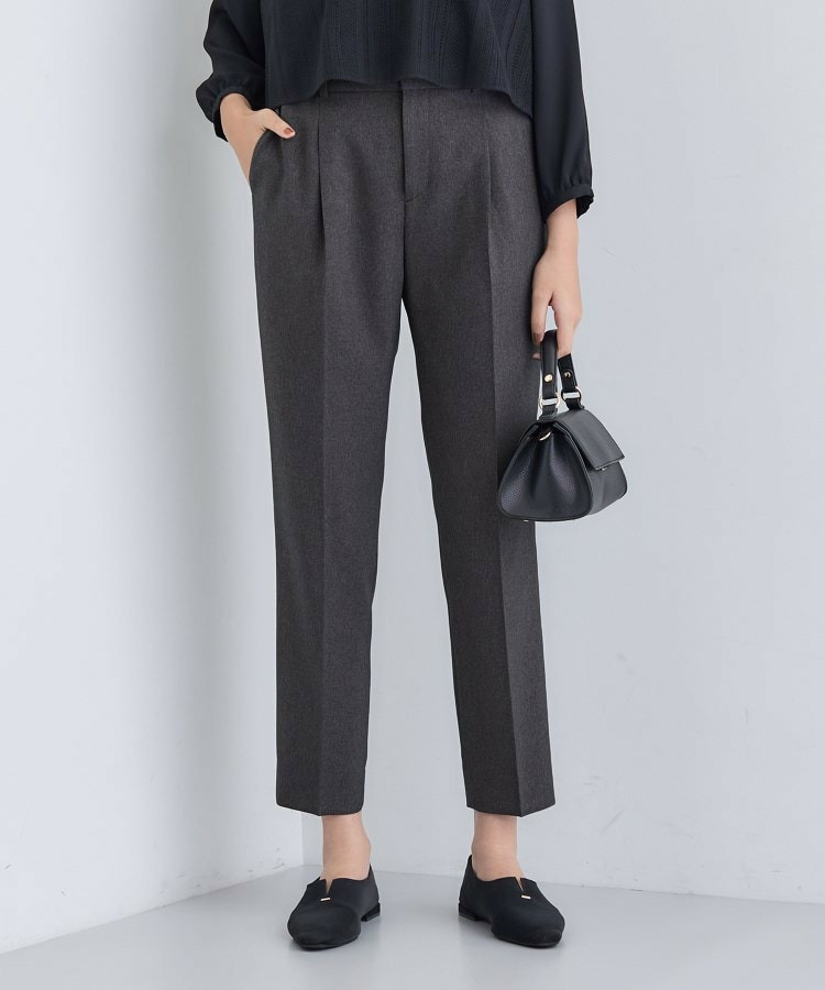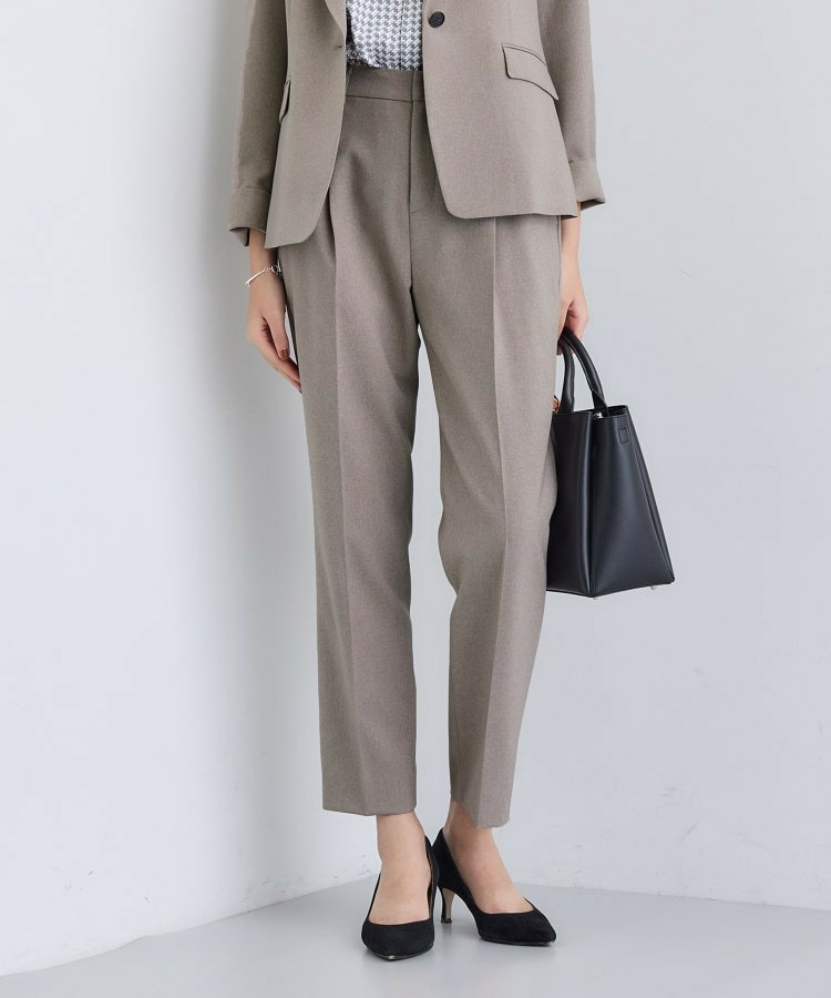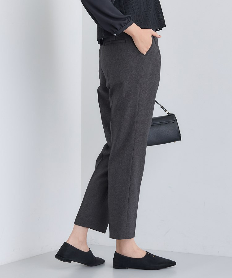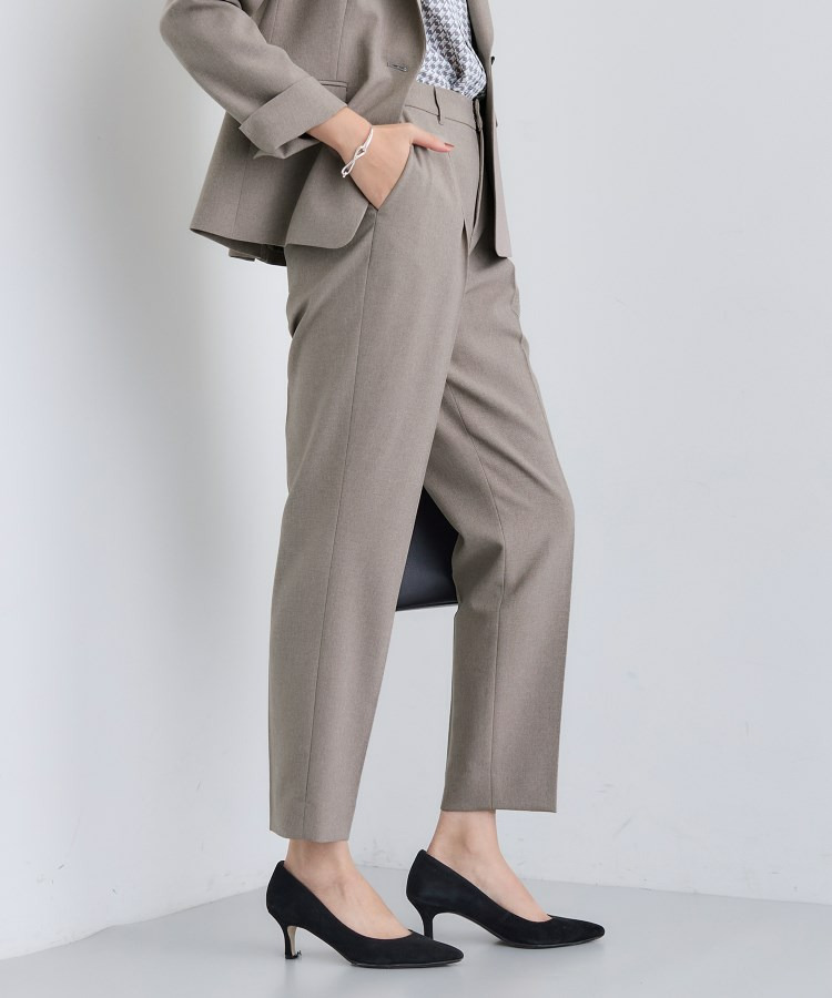 【洗える/通勤/スーツ】メランジストレッチ テーパードパンツ