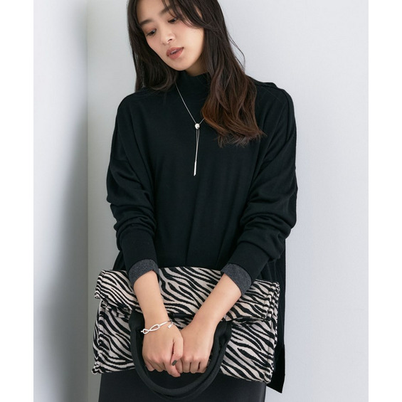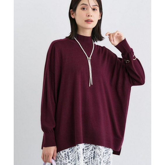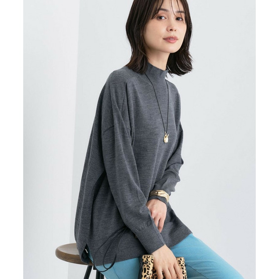 ハイネックのオーバーシルエットに、裾スリットとヒップを隠せる着丈で、抜け感とリラックス感を兼ね備えています。