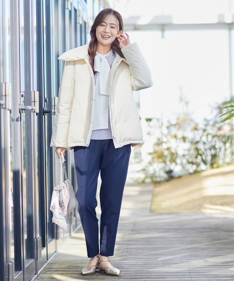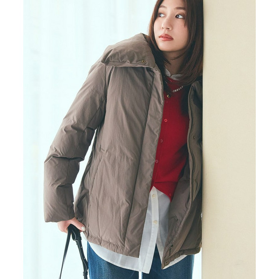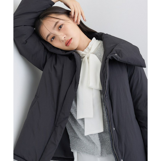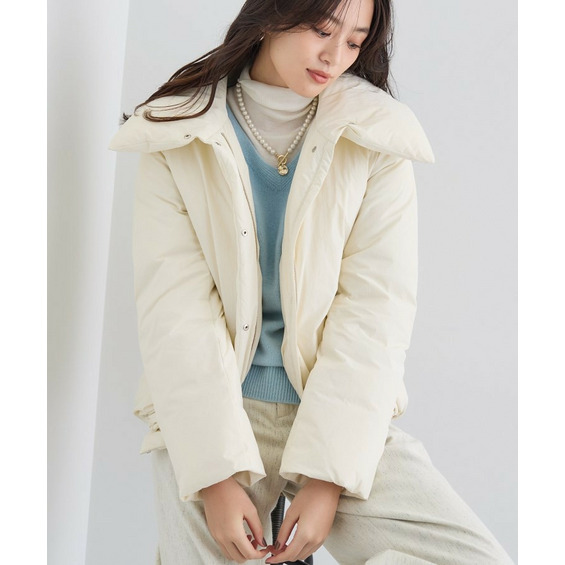 ステンカラーのようなデザイン衿がポイントのショートダウンは、ステッチレスならではのふかっとした見え感がトレンド感を演出します。