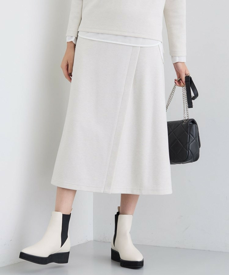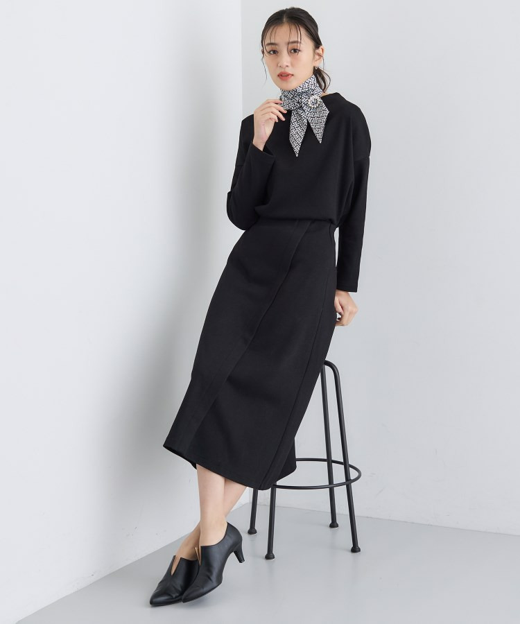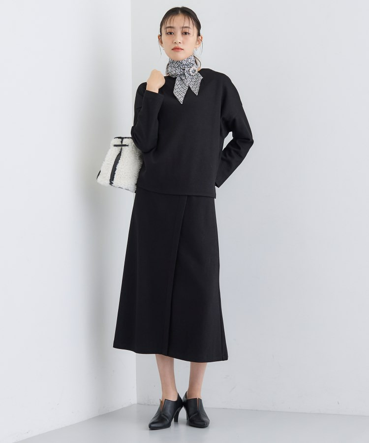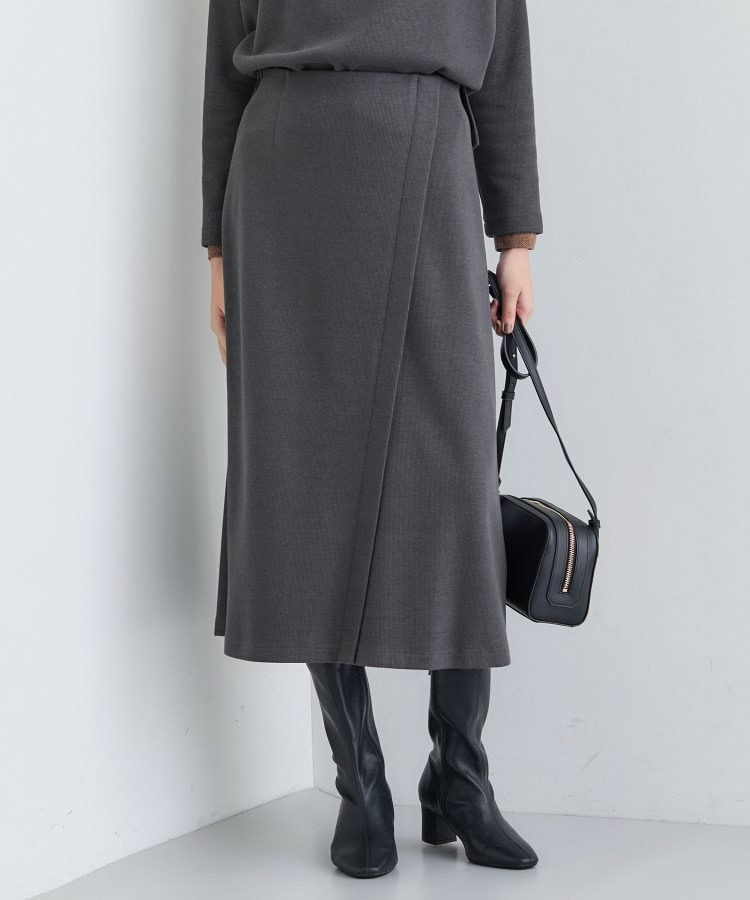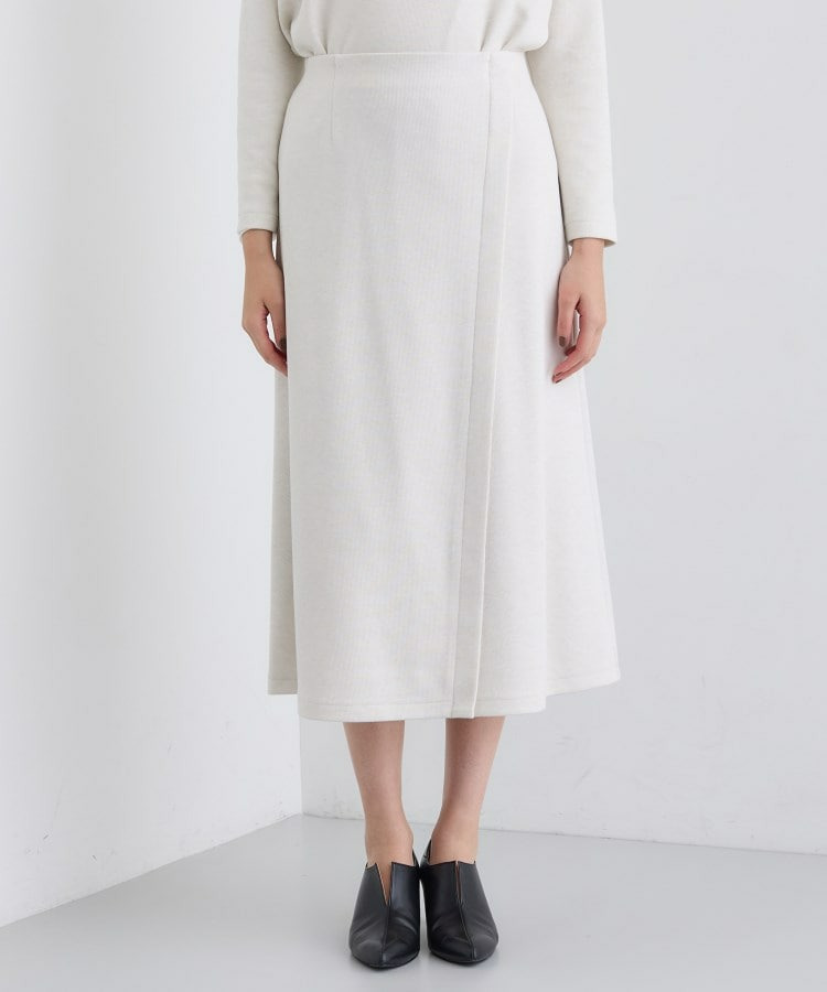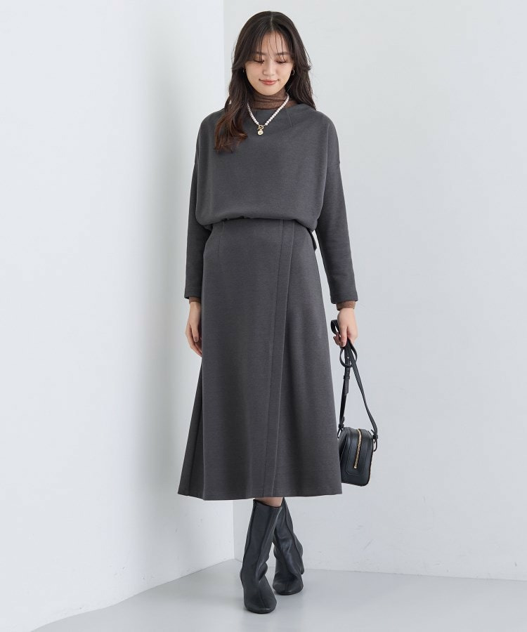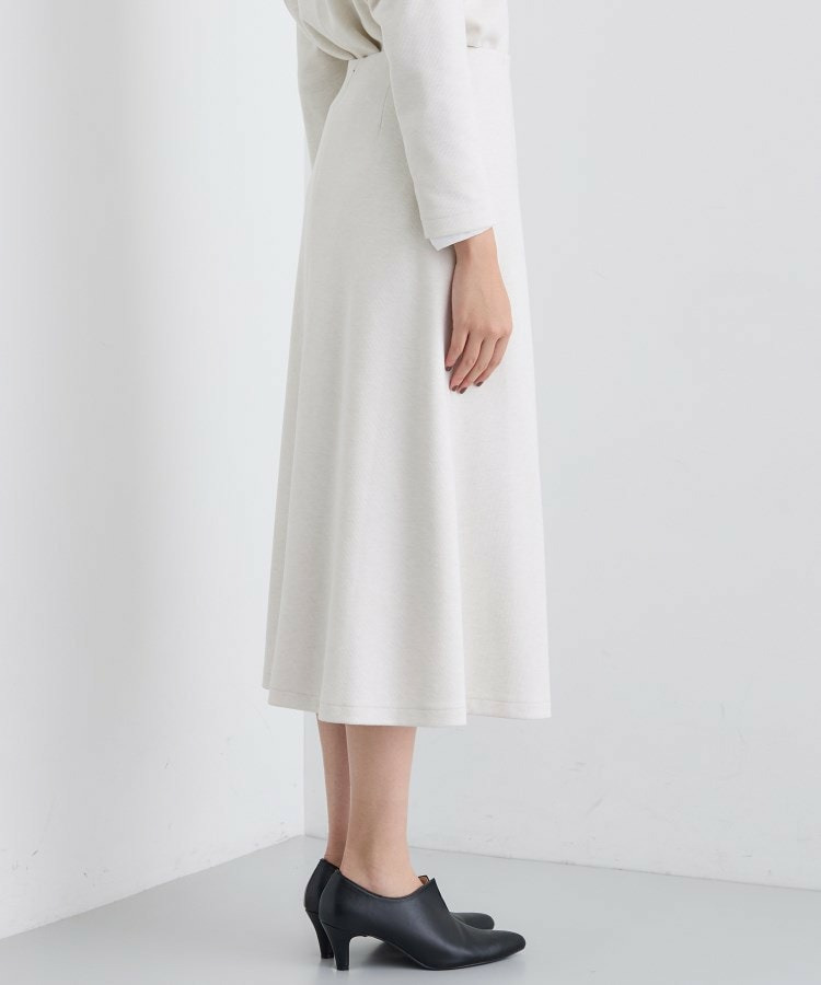 程よい落ち感でナローなラインのセミフレアスカートをデザイン。