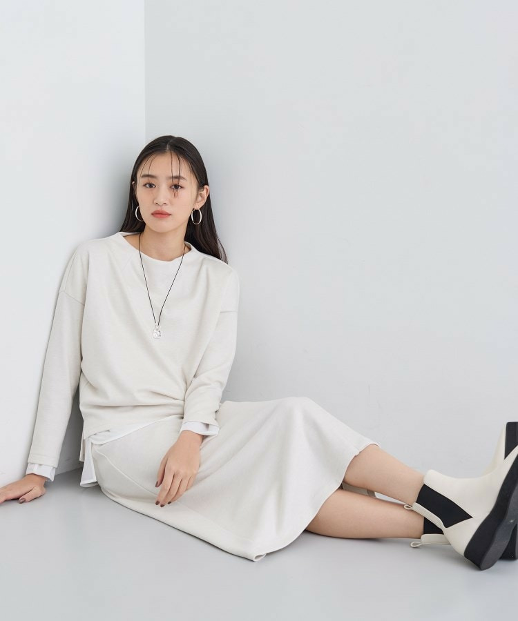 後ろ身にかけて軽やかなフレアを施し、女性らしい雰囲気で着用いただけるシルエットです。