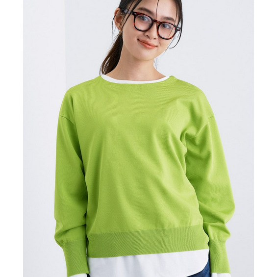 着丈はやや短めで、ワイドパンツやスカートとのバランスが取りやすい一枚です。