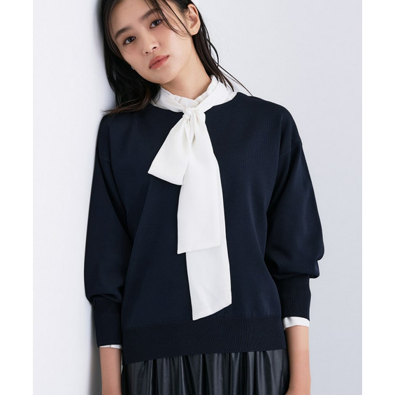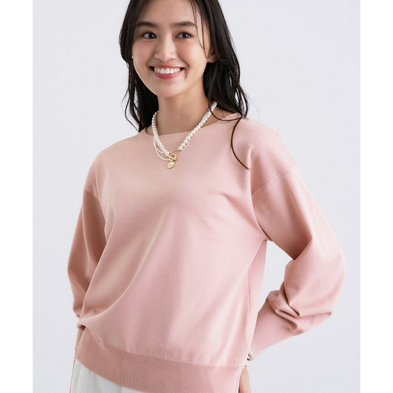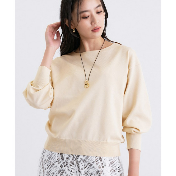 デコルテを美しく見せるボートネックに、さりげなく立体感を持たせた袖フォルムがポイント。