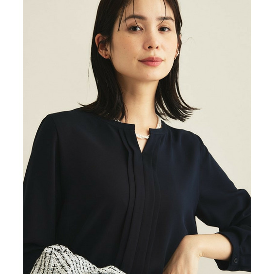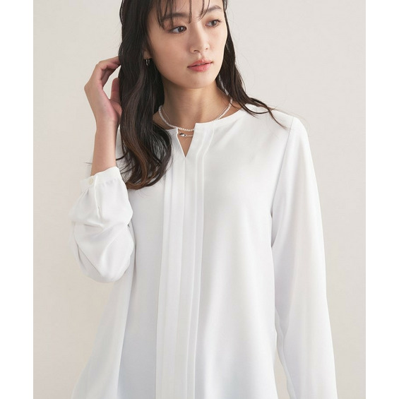 スリットネックにすることで女性らしい抜け感も出る一枚です。