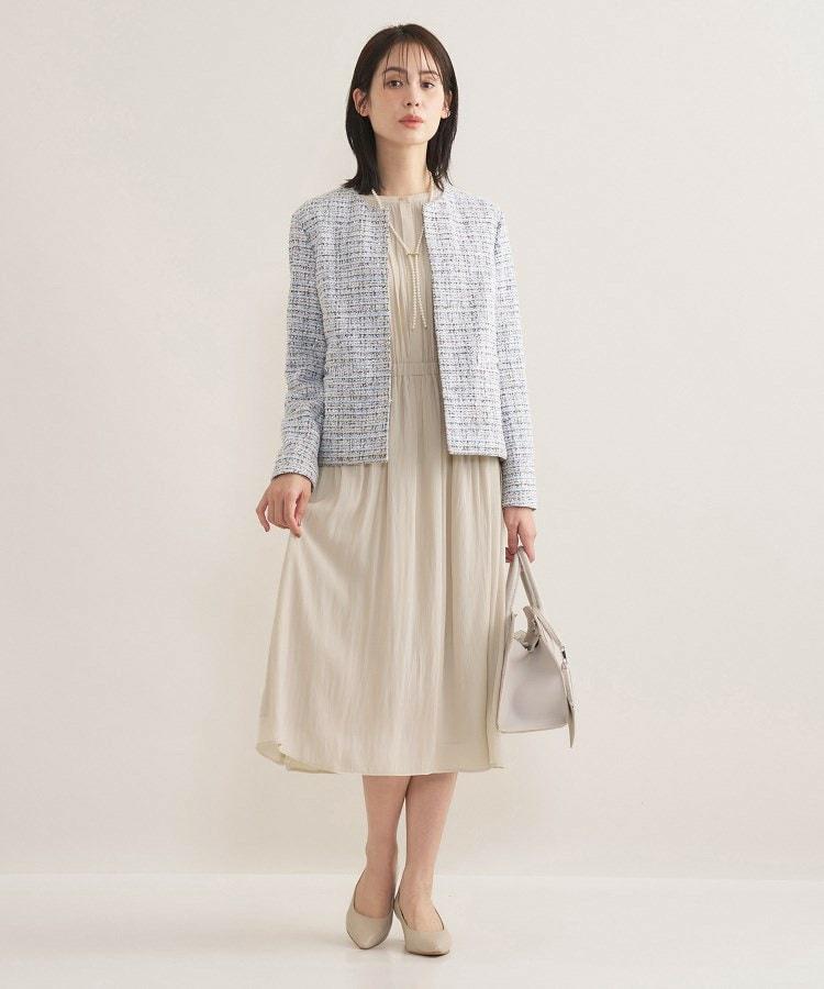 セレモニーなどハレの日にご着用いただけるよう、ギャザーデザインで女性らしい雰囲気に仕上げています。