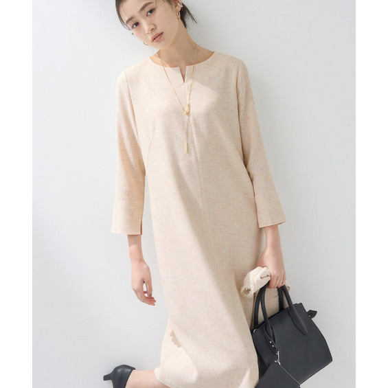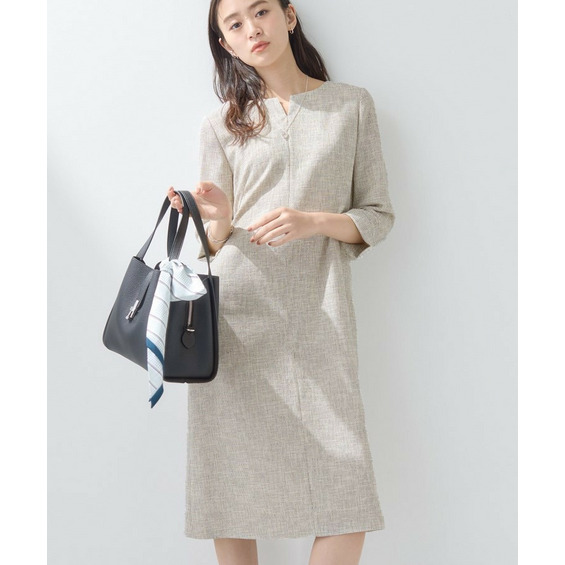軽い素材感のツイードを使用したAラインワンピースです。