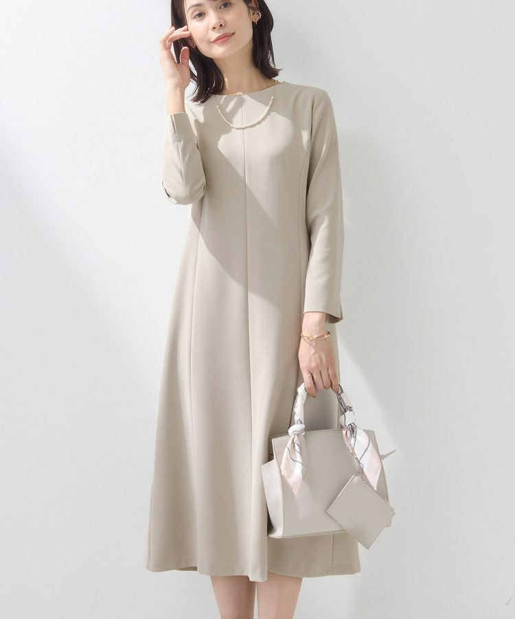 きれいめワンピースとして通勤、セレモニーや学校行事等幅広く活躍します。