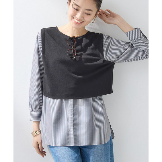 レイヤード風デザインなので、1枚でサマになるアイテムとしてご着用いただけます。