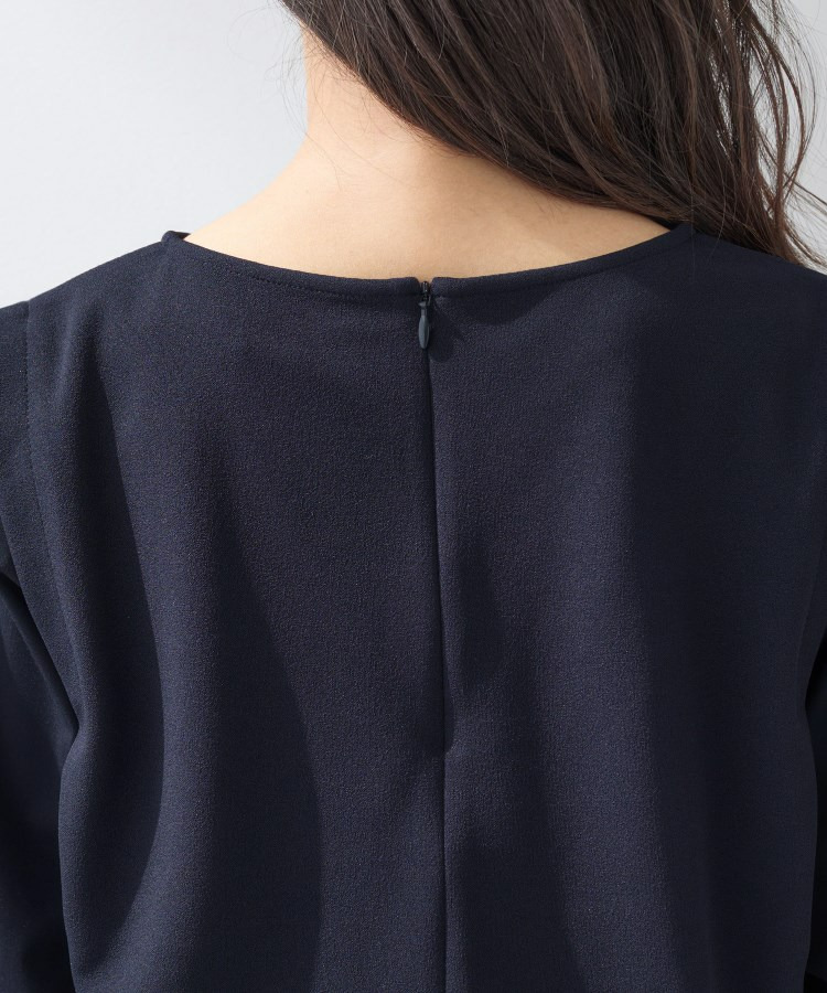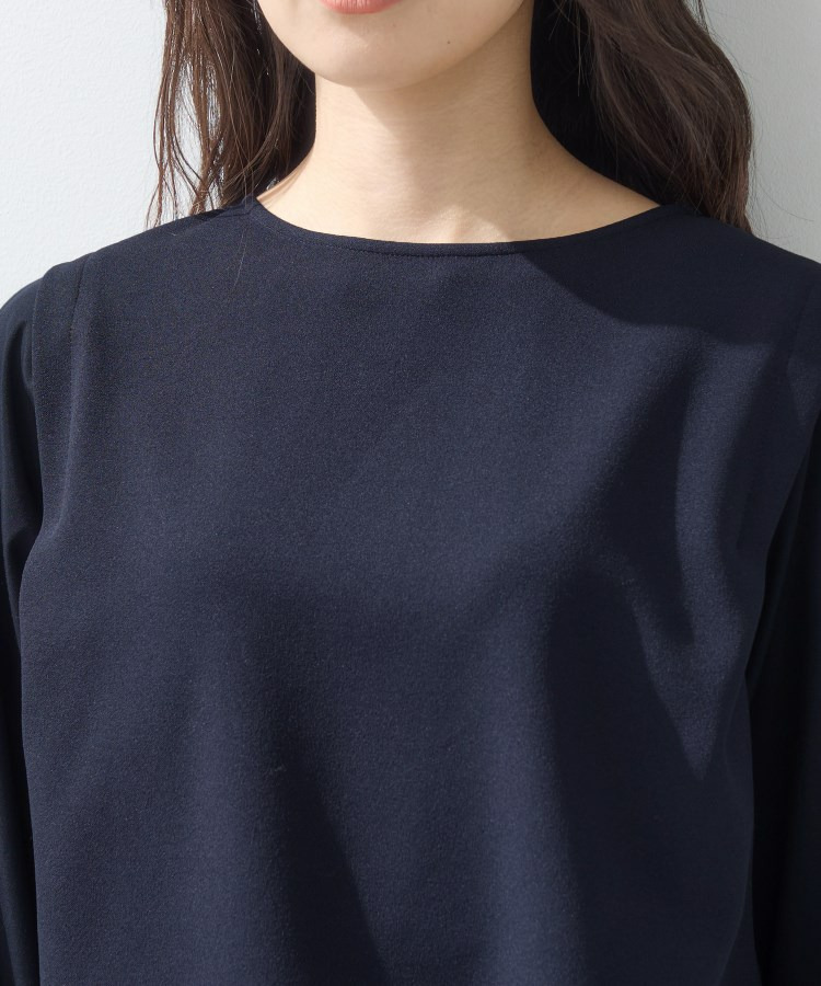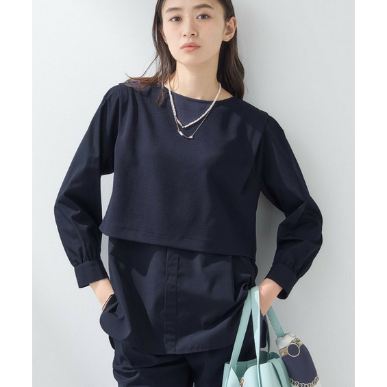 カットソー素材と布帛素材をドッキングしたデザイントップスです。
